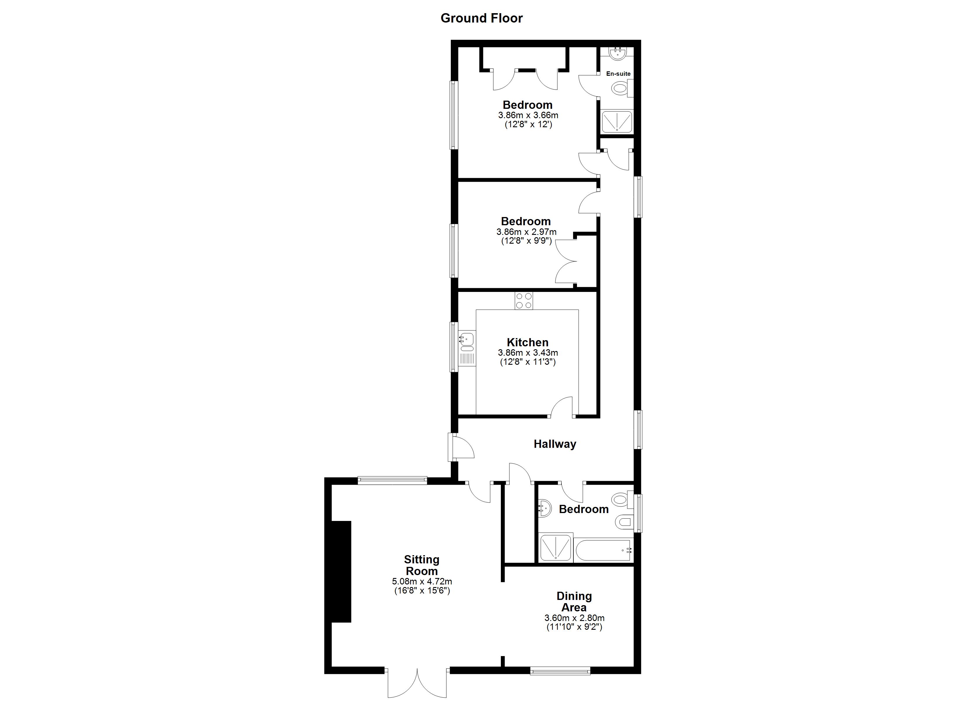 The accommodation comprises of a good size sitting room with French doors onto garden and an open plan kitchen/dining room finished with oak work surfaces and an extensive range of fitted units, all with integrated appliances, and solid oak flooring throughout. A master bedroom with en-suite shower room, two double bedrooms, main bathroom which has been fully tiled, and a welcoming entrance hall.