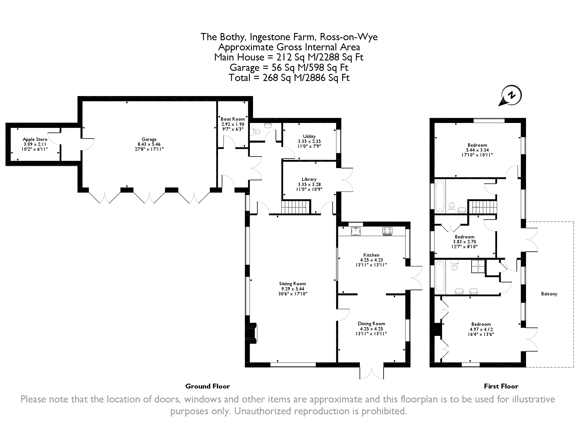 From Ross-on-Wye take the second exit from the Wilton roundabout towards Hereford (A49) and then take first right turn, passing Bridstow School on the left. Follow this road for approximately 2 miles. At the end the road forks left and right, so take the right-hand fork signposted Foy (No Through road). Continue along this lane, passing Foy Church on the right, and after a further 0.5 miles the road comes to a fork. Take the right fork marked Ingestone Private Road and cross a courtyard, with a Georgian farmhouse on the right-hand side. Across the courtyard, the top of the driveway to The Bothy is immediately to the right through the gate.