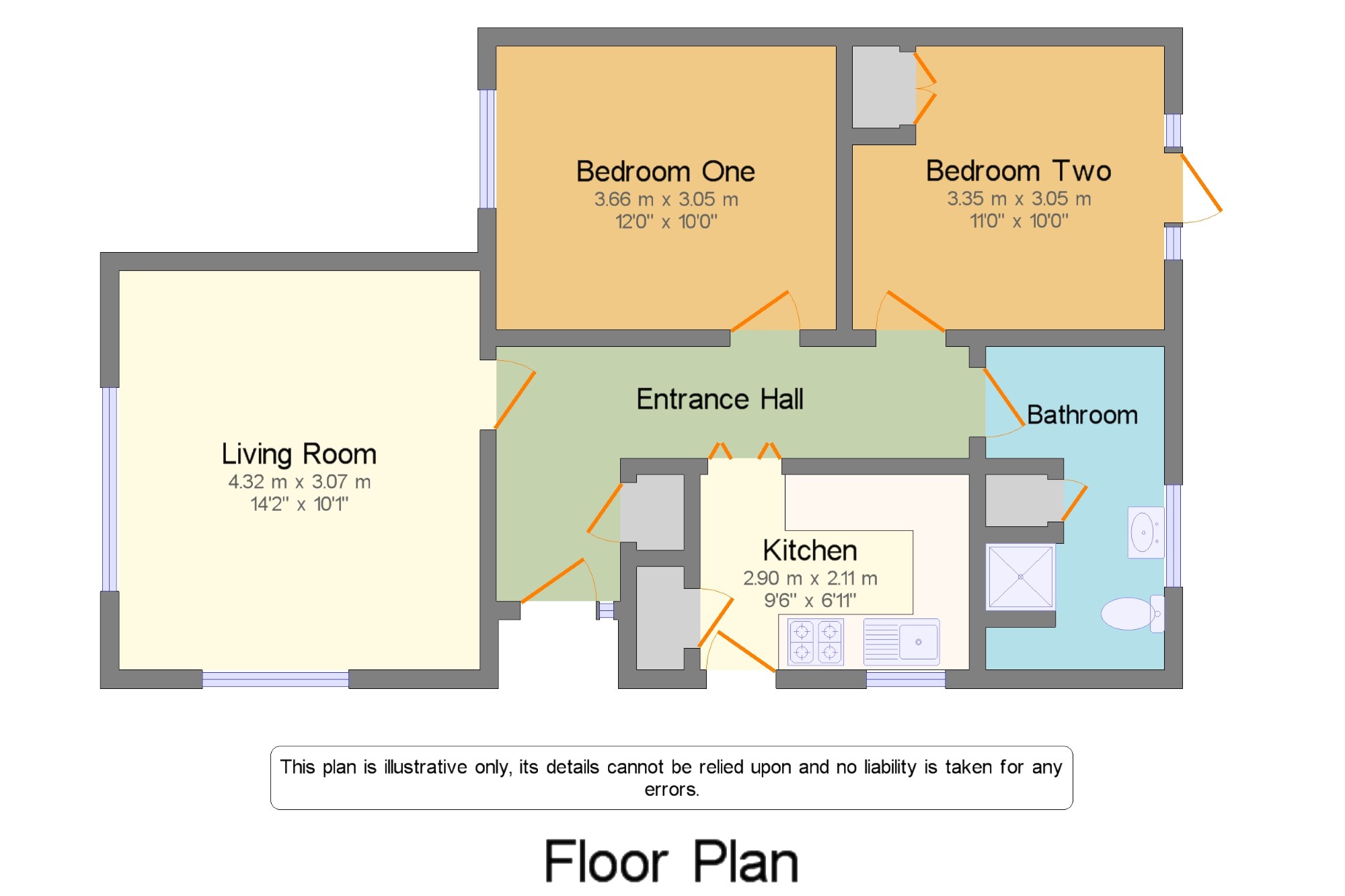 Bathroom One 2'2" x 2'4" (0.66m x 0.71m).