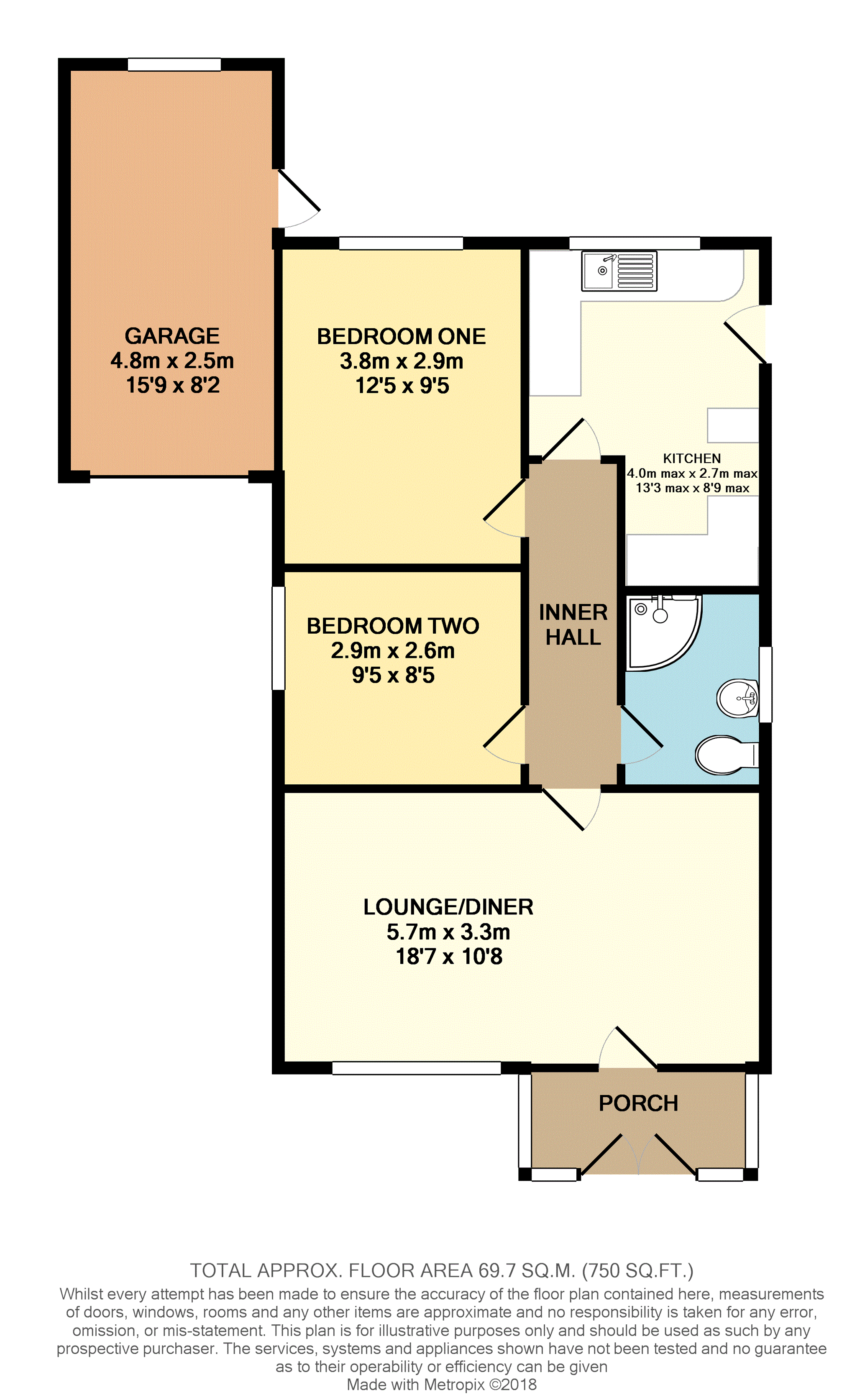 The accommodation briefly comprises entrance porch, lounge/dining, inner hall, two bedrooms, kitchen and shower room. Externally there is off road parking to the front, single garage to the side of the property with paved garden area to the rear.