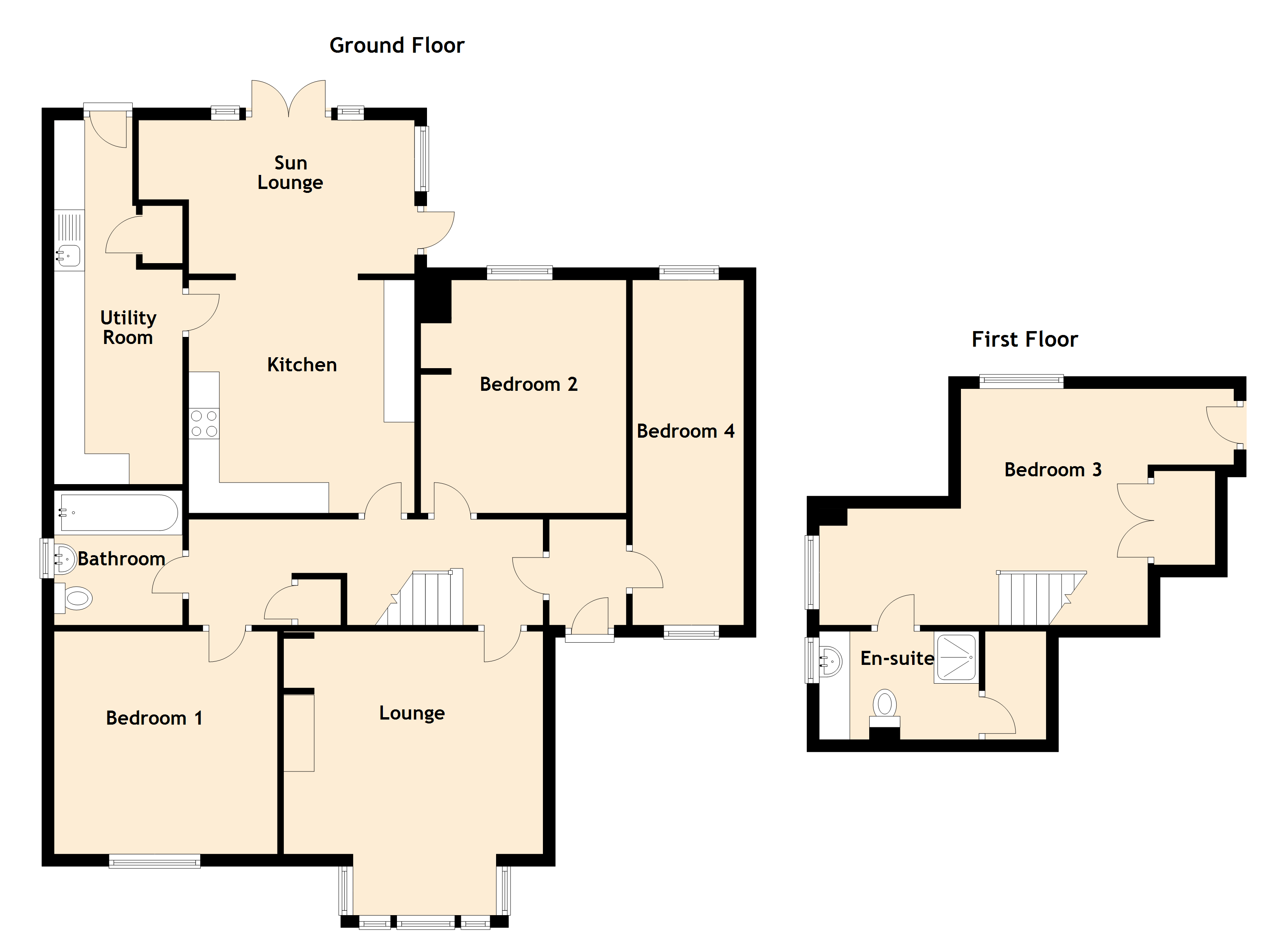 There is a modern, partially tiled kitchen, benefiting from an integrated five gas hob, extractor hood, double oven/grill, micro/oven, wine rack and soft-close units, leading onto the sunroom which has a skylight, currently used as a dining room. This provides access to the rear garden through double patio doors and a fully fitted, partially tiled utility room with an integrated dishwasher, under-unit lighting, a larder and further access to the rear garden.
