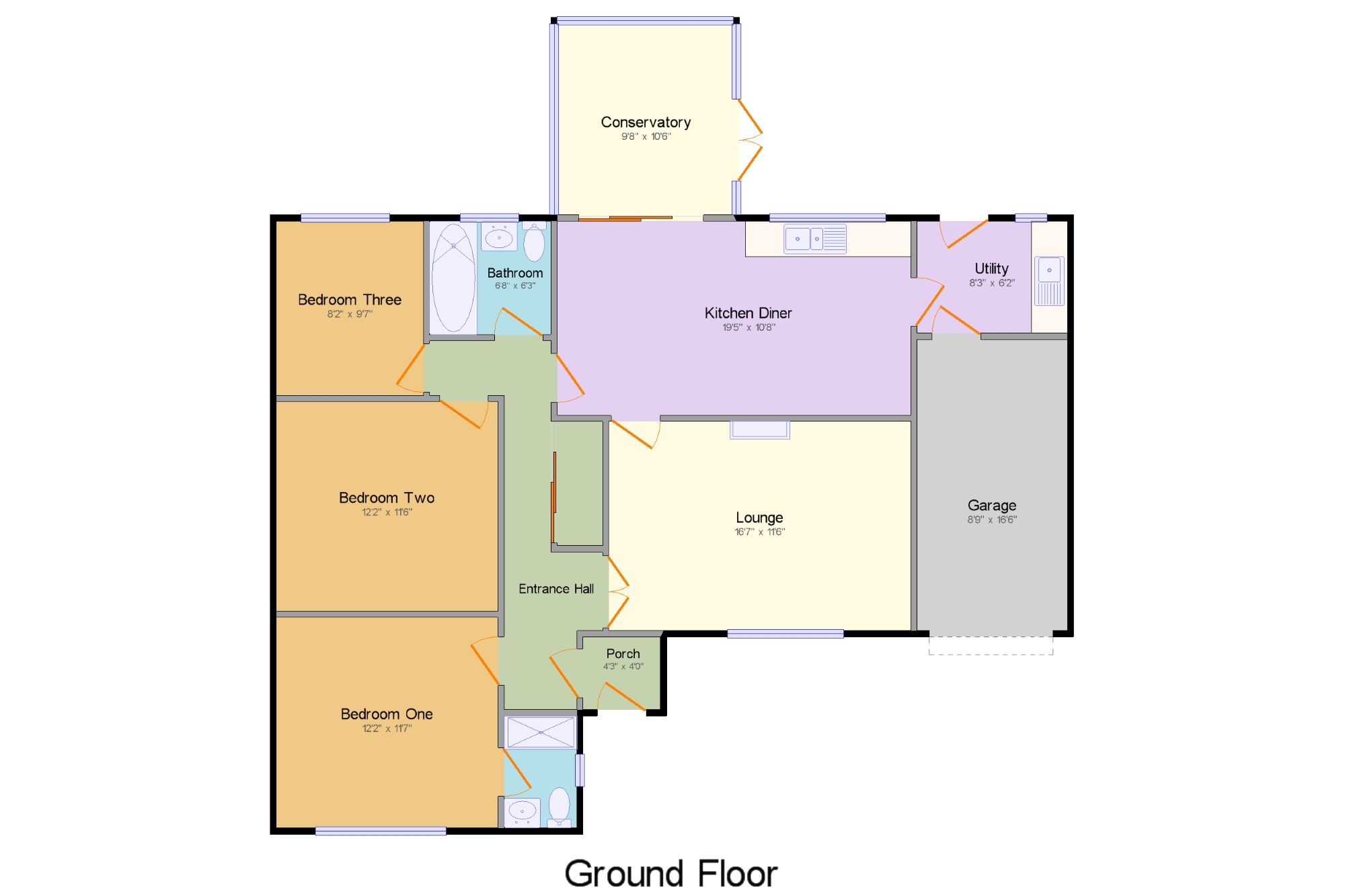 Outside x . The property sits on a generous size corner plot, offering gardens to side and front which are mostly laid to lawn, with a wide variety of shrubs. Wide driveway provides ample off road parking for a number of vehicles, as well as plenty of space for a caravan, leading to single garage. Having outside security lighting and water tap. To the rear, the gardens have been newly landscaped with two paved patio areas, and high quality astro-turf style lawn with border containing a variety of plants and shrubs, and fruit trees.