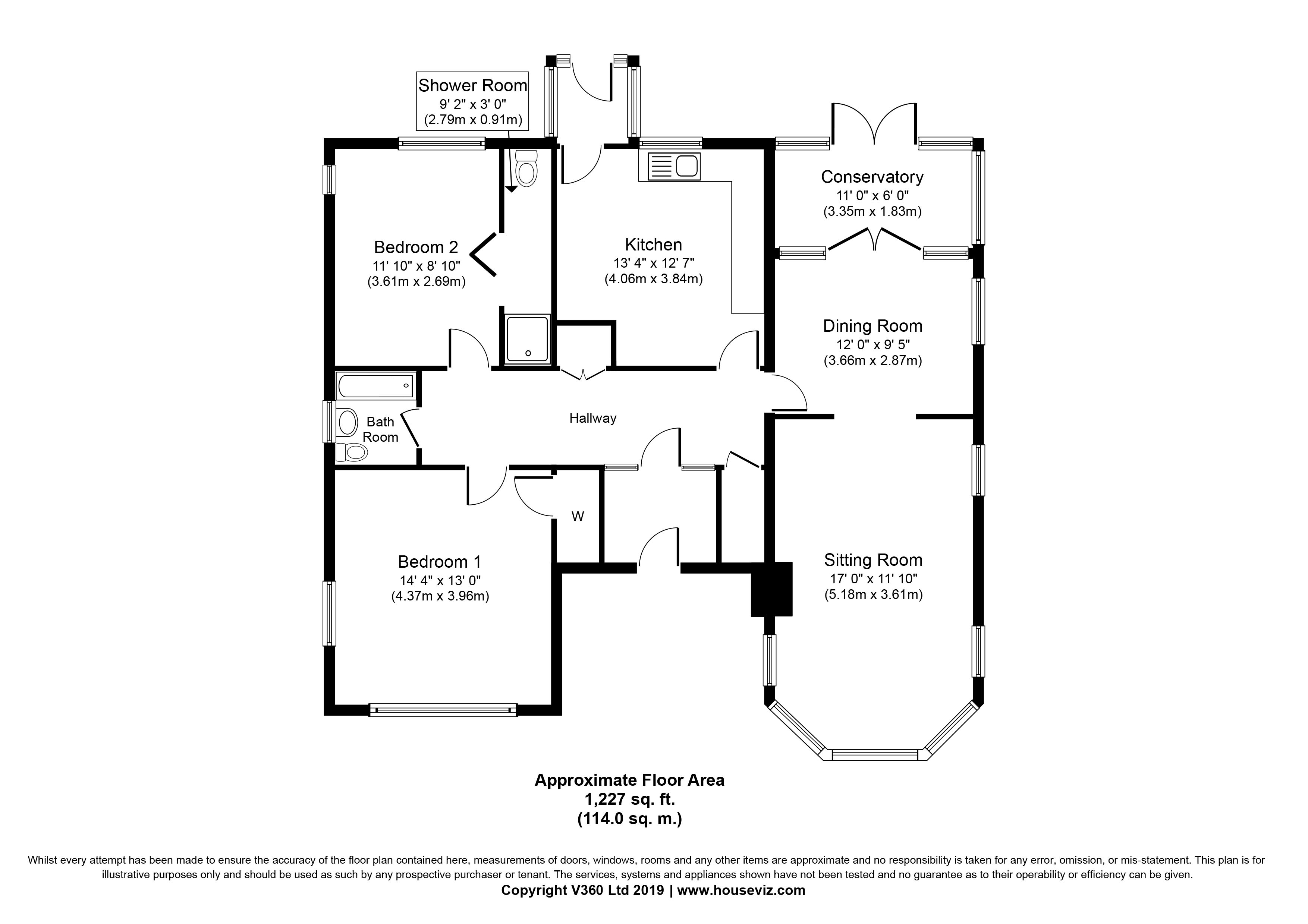 9'2 (2.79m) x 3' (0.91m). Shower with door; wash hand basin; wc; Worcester boiler; downlights; coving; extractor fan; part-tiled.