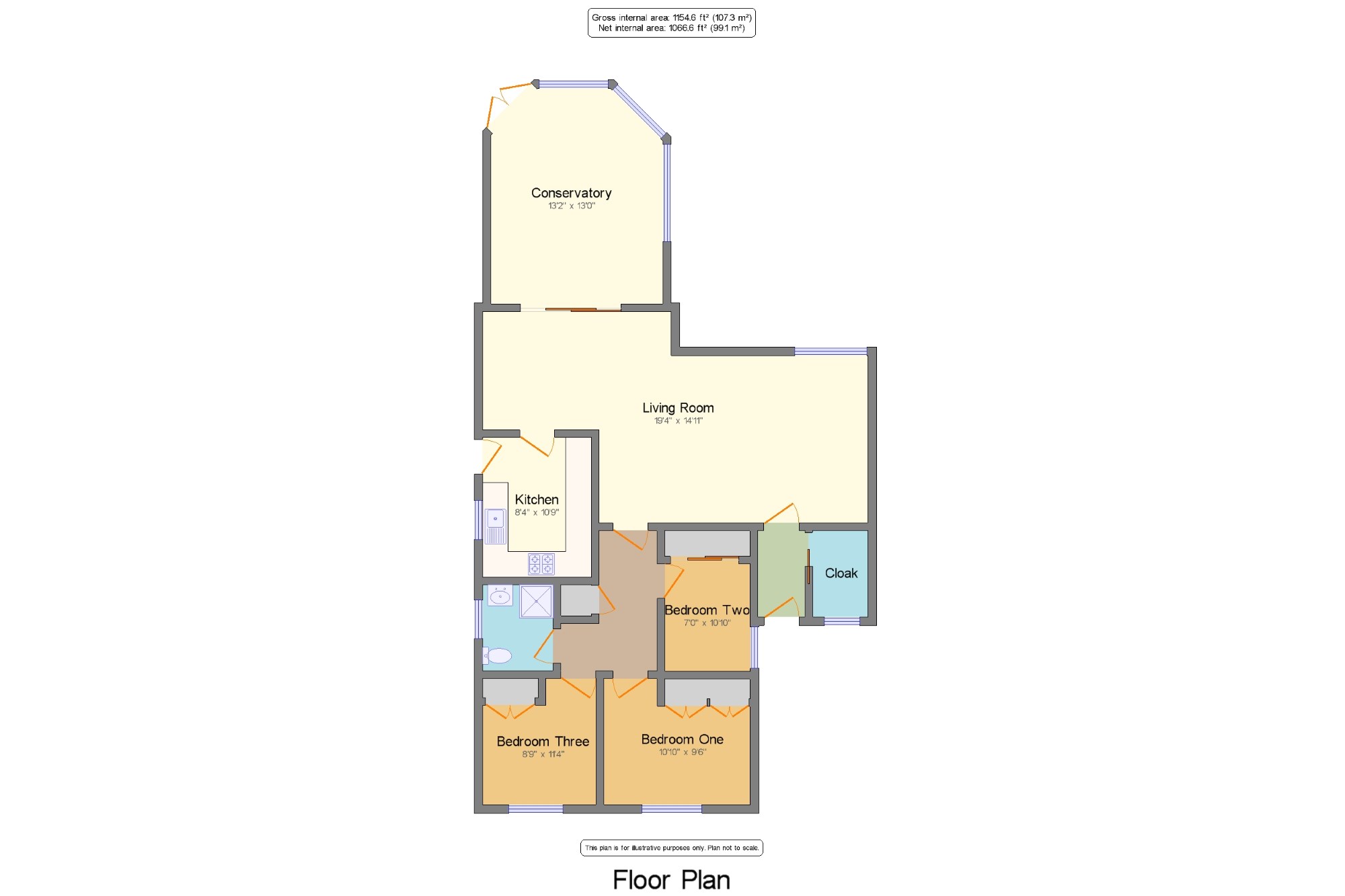 Living Room19'4" x 14'11" (5.9m x 4.55m). Carpeted flooring, ceiling lights, radiators. Remote controlled gas fire, doors leading to conservatory and kitchen.