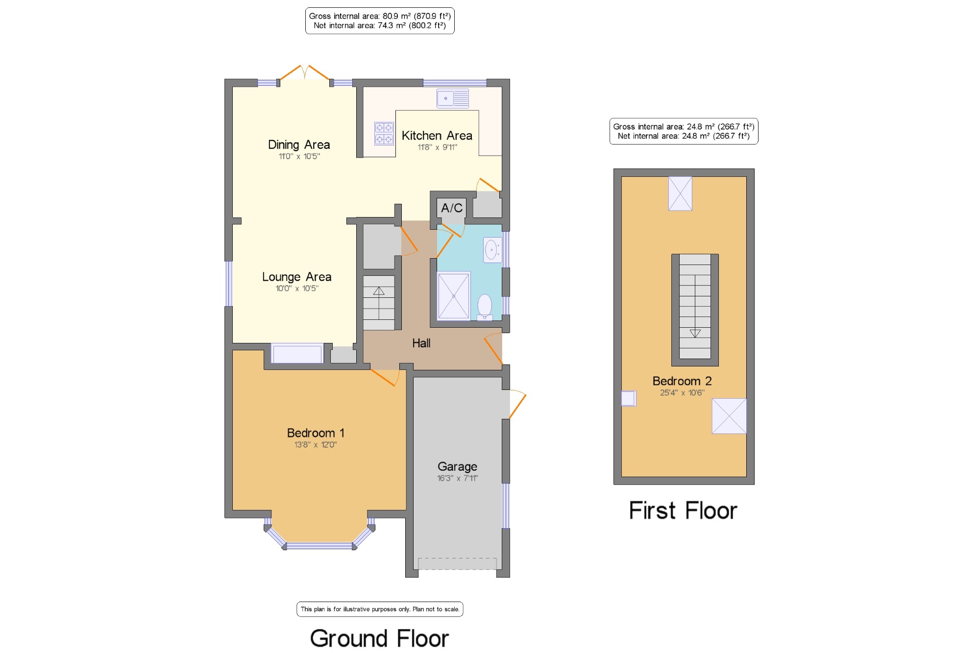 Bedroom 225'4" x 10'6" (7.72m x 3.2m). With two skylights and a radiator.
