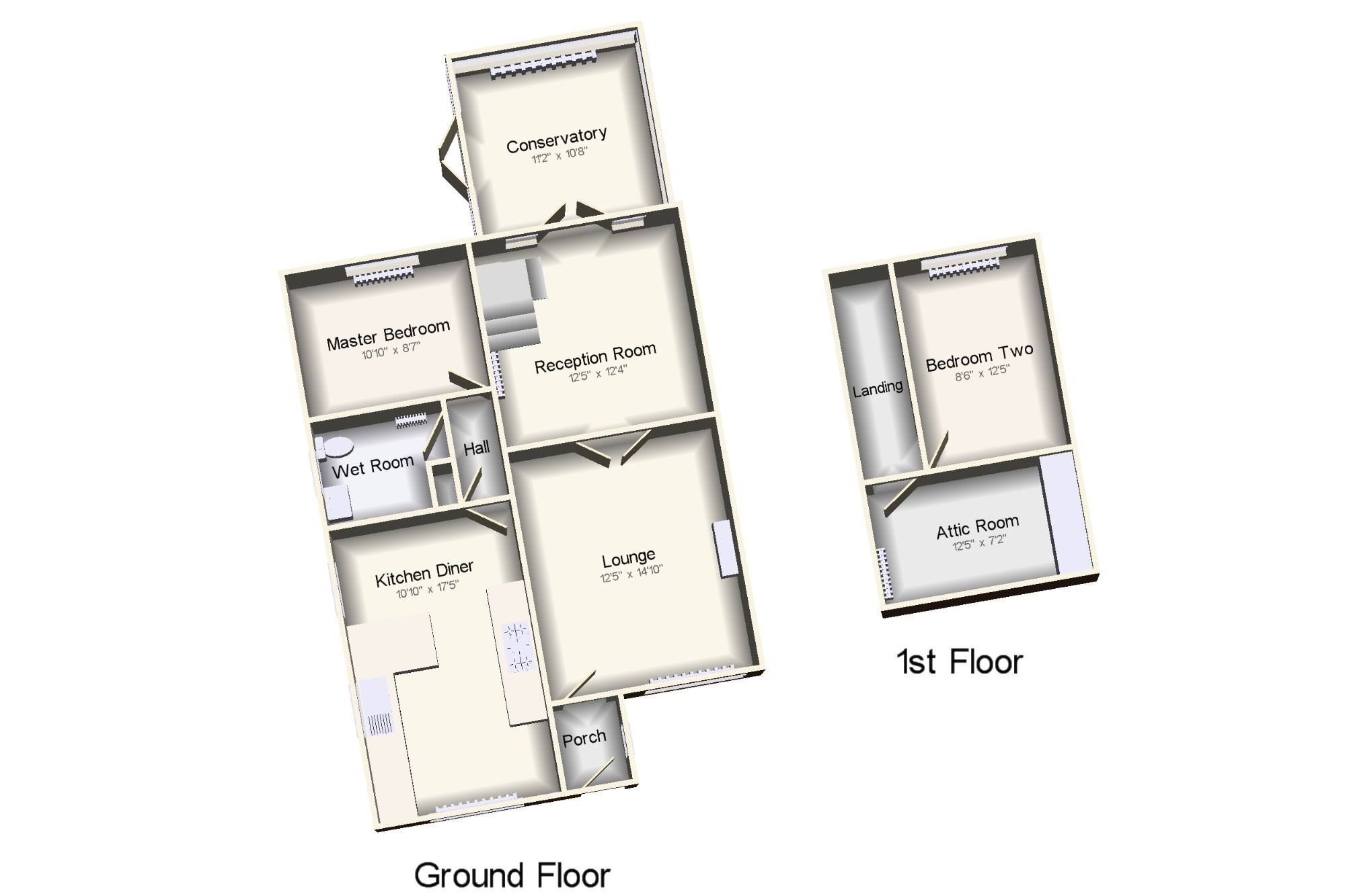 This immaculately presented dorma bungalow, has to be viewed to fully appreciate to living space on offer! The property features an entrance porch, spacious front lounge, a second reception room with doors to a fantastic size conservatory, a superb 'country-style' kitchen diner with integrated appliances, wet room and a master double bedroom. To the first floor is a second double bedroom and an additional attic room, which could easily be used as an additional bedroom if desired. Externally there is a driveway for multiple vehicles to the front and a beautiful, low maintenance rear garden. Viewings are highly recommended!