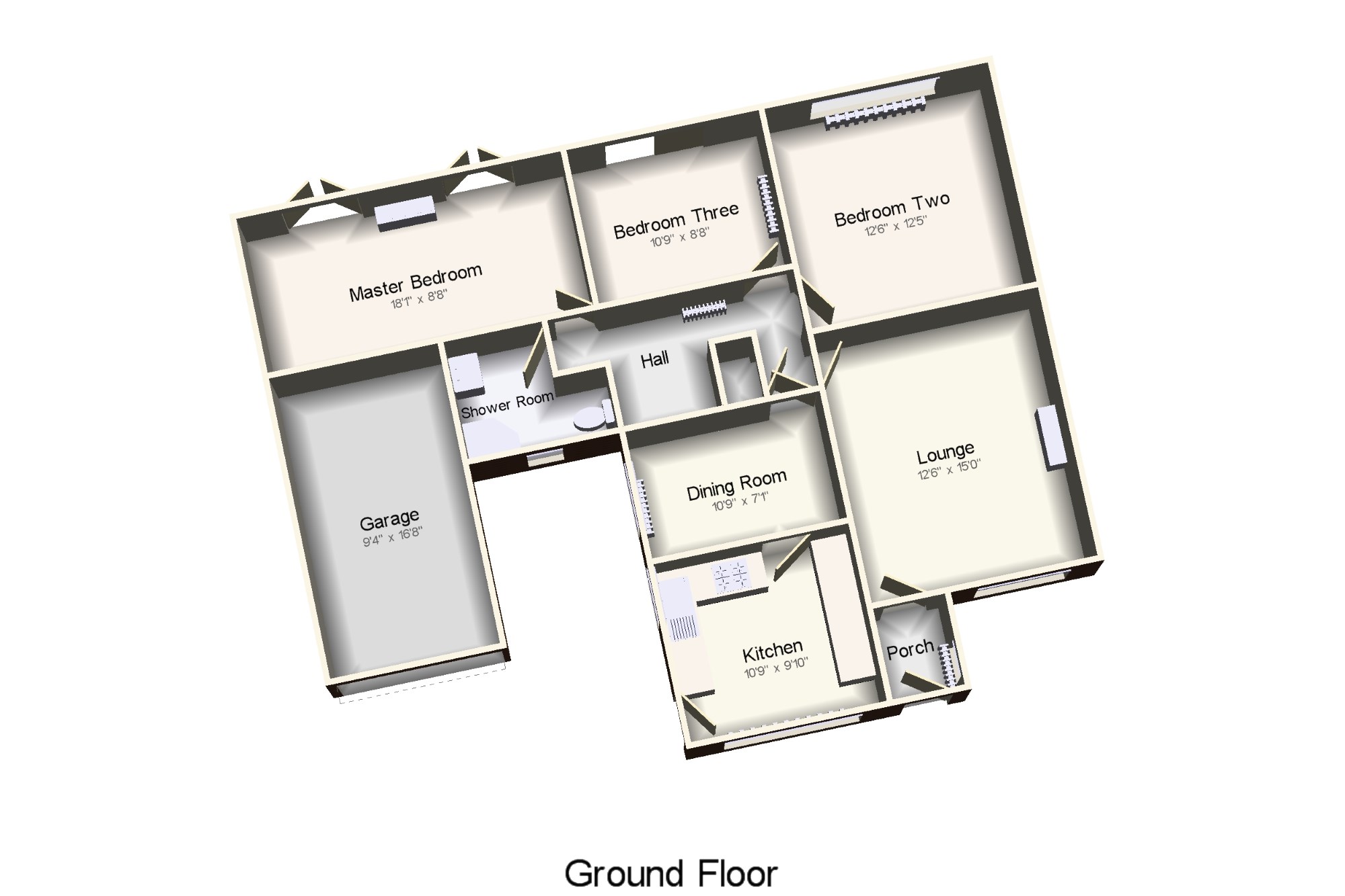 Lounge12'6" x 15' (3.8m x 4.57m). Double glazed uPVC window facing the front overlooking the garden. Radiator and electric fire, carpeted flooring.