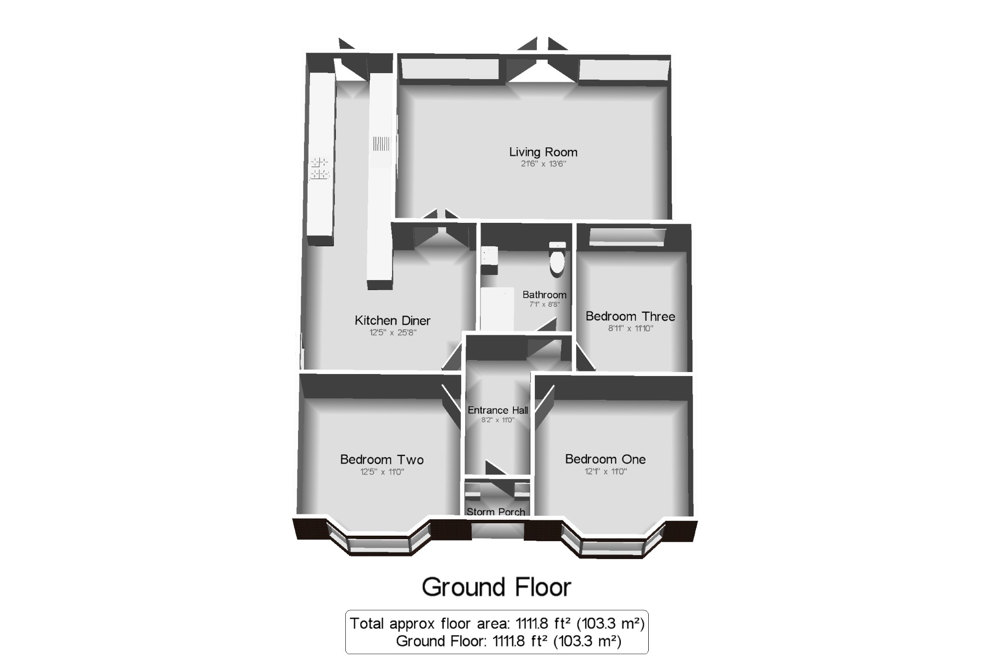 Bedroom One12'1" x 11' (3.68m x 3.35m). Double glazed uPVC bay window facing the front. Radiator, ornate coving, ceiling light.