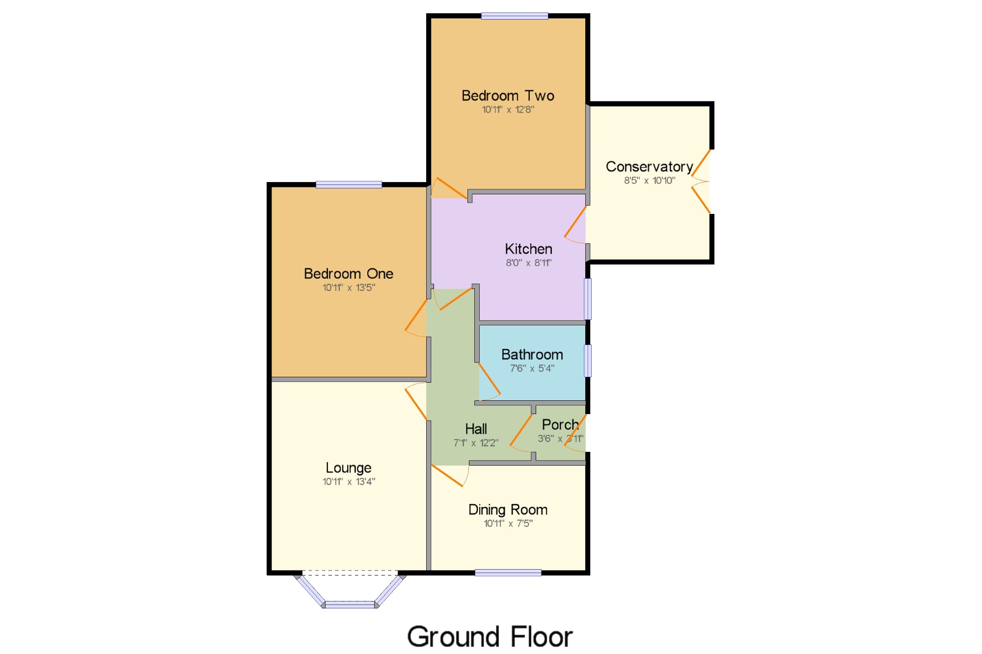 Bedroom One10'11" x 13'5" (3.33m x 4.1m). Double glazed window facing the rear. Single radiator.