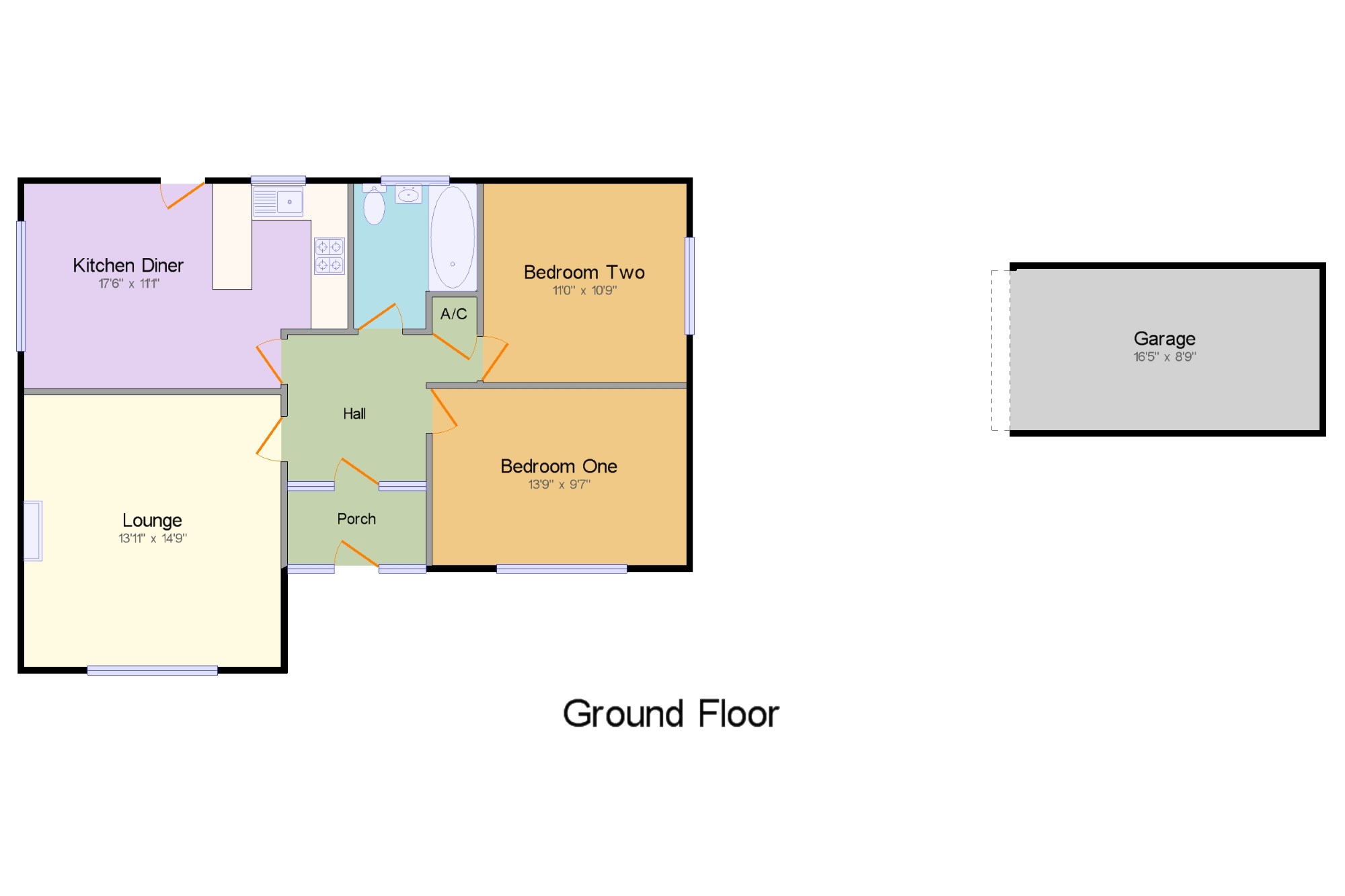 This appealing two bedroom detached bungalow occupies an attractive corner plot in a quiet cul de sac location. The property offers generous living space throughout and has been very well maintained. In brief the bungalow comprises of lounge, kitchen diner, bathroom, two double bedrooms, hall, porch and detached garage. The main features include modern gas central heating, double glazed windows and doors, integrated fridge with freezer compartment, electric oven, gas hob, breakfast bar, electric shower, gas feature fire, security alarm, driveway parking and low maintenance rear garden. No chain. Viewing advised.