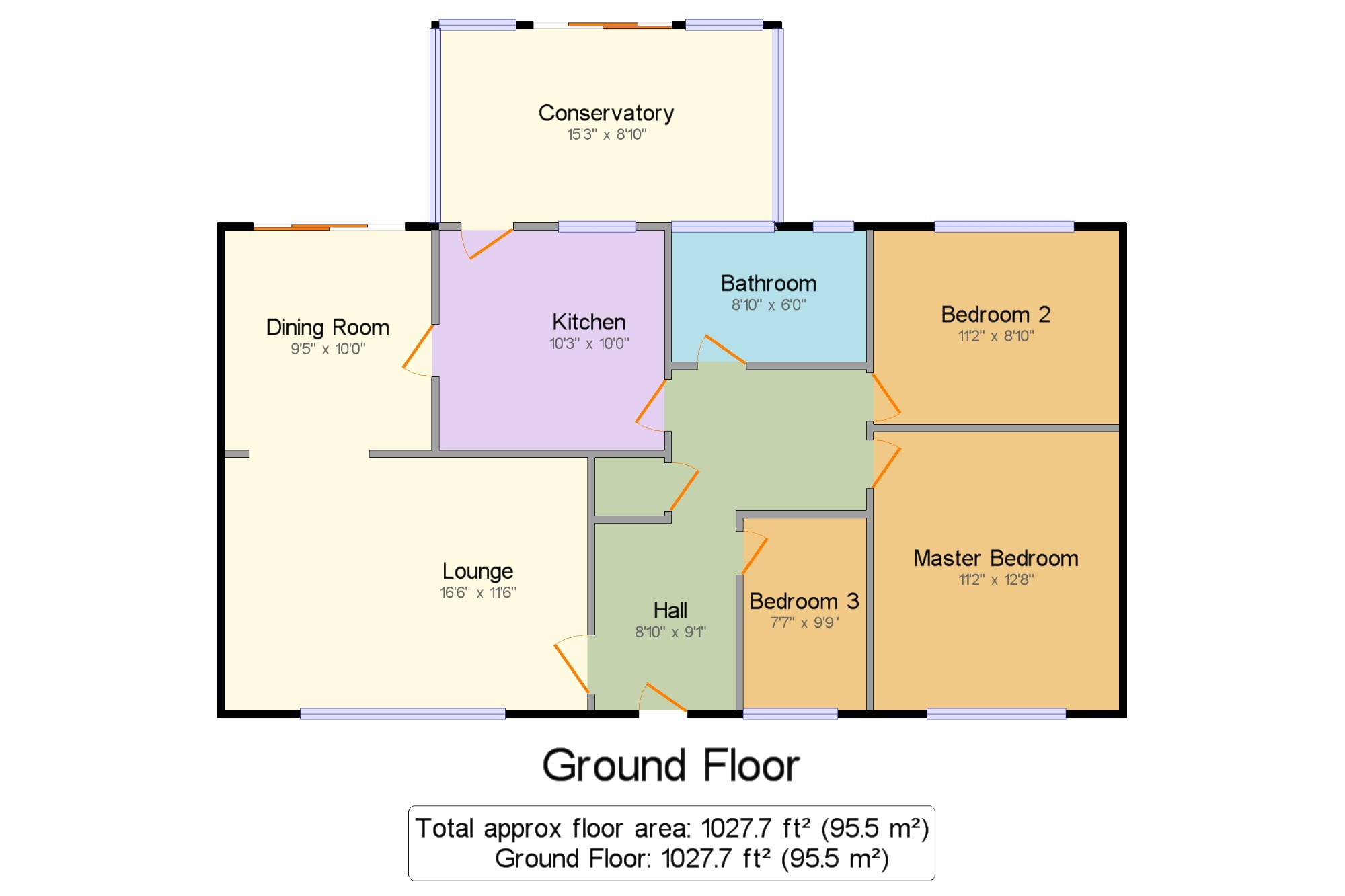 Conservatory 15'3" x 8'10" (4.65m x 2.7m). UPVC sliding double glazed door, opening onto the garden. Laminate flooring.