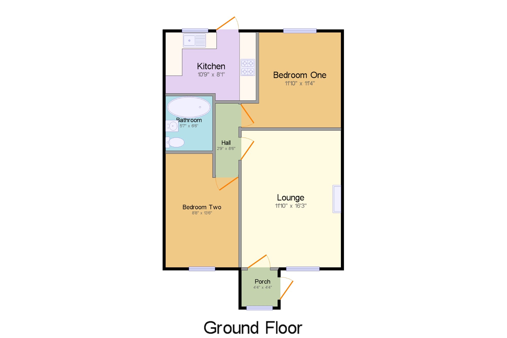 Porch 4'4" x 4'4" (1.32m x 1.32m).