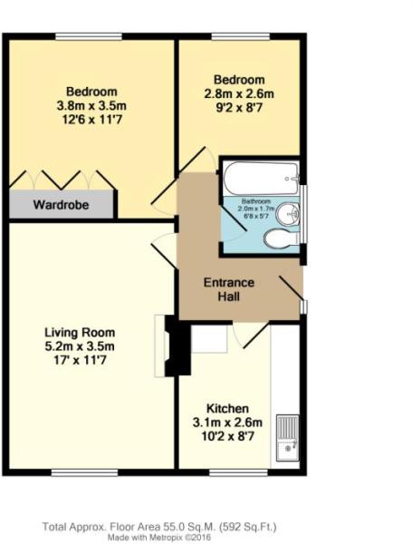 * Bathroom: 2m x 1.7m (6' 7" x 5' 7")