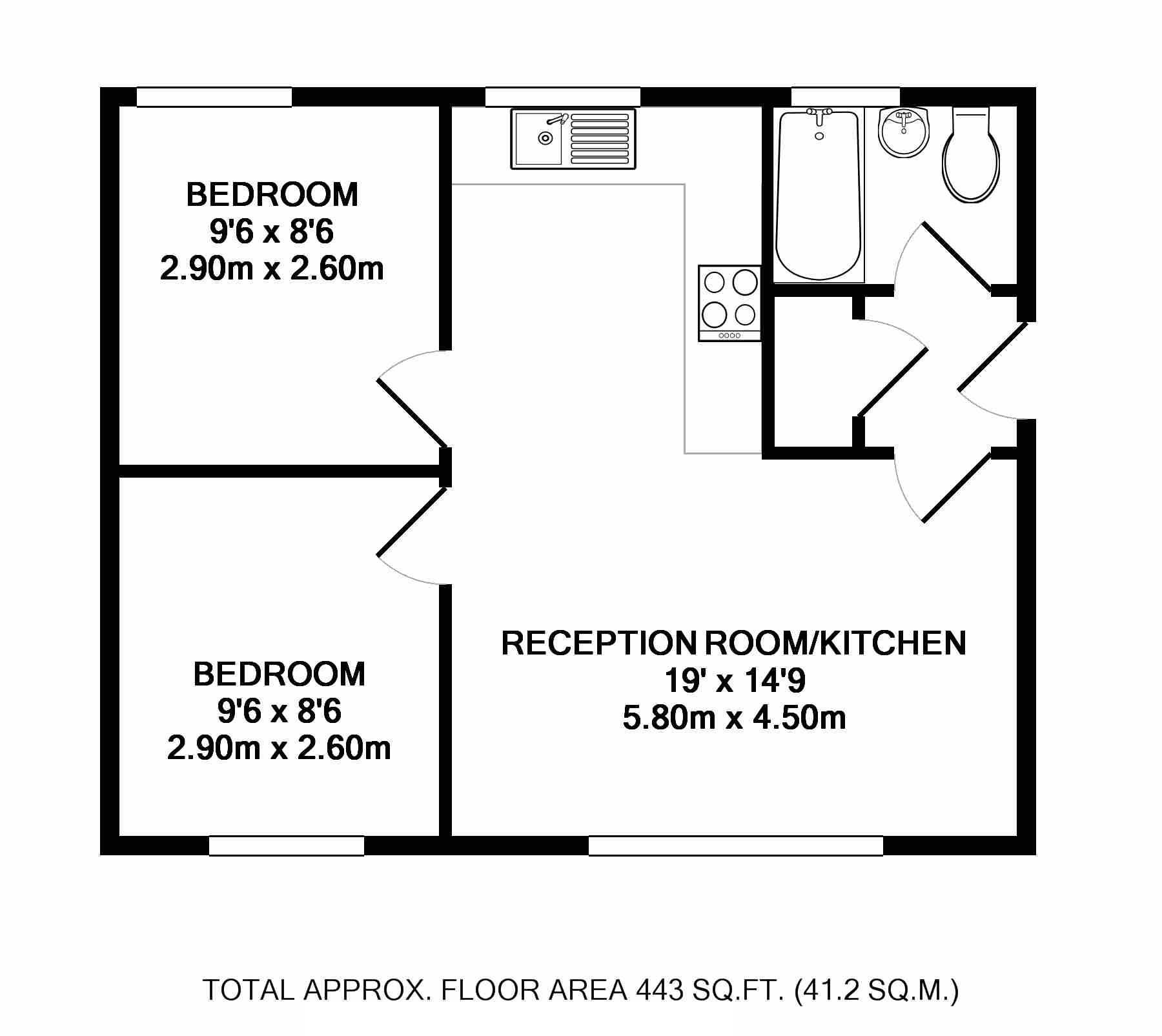 Second bedroom comprises of a bunk bed with additional single bed, electric heater and fitted wardrobe.