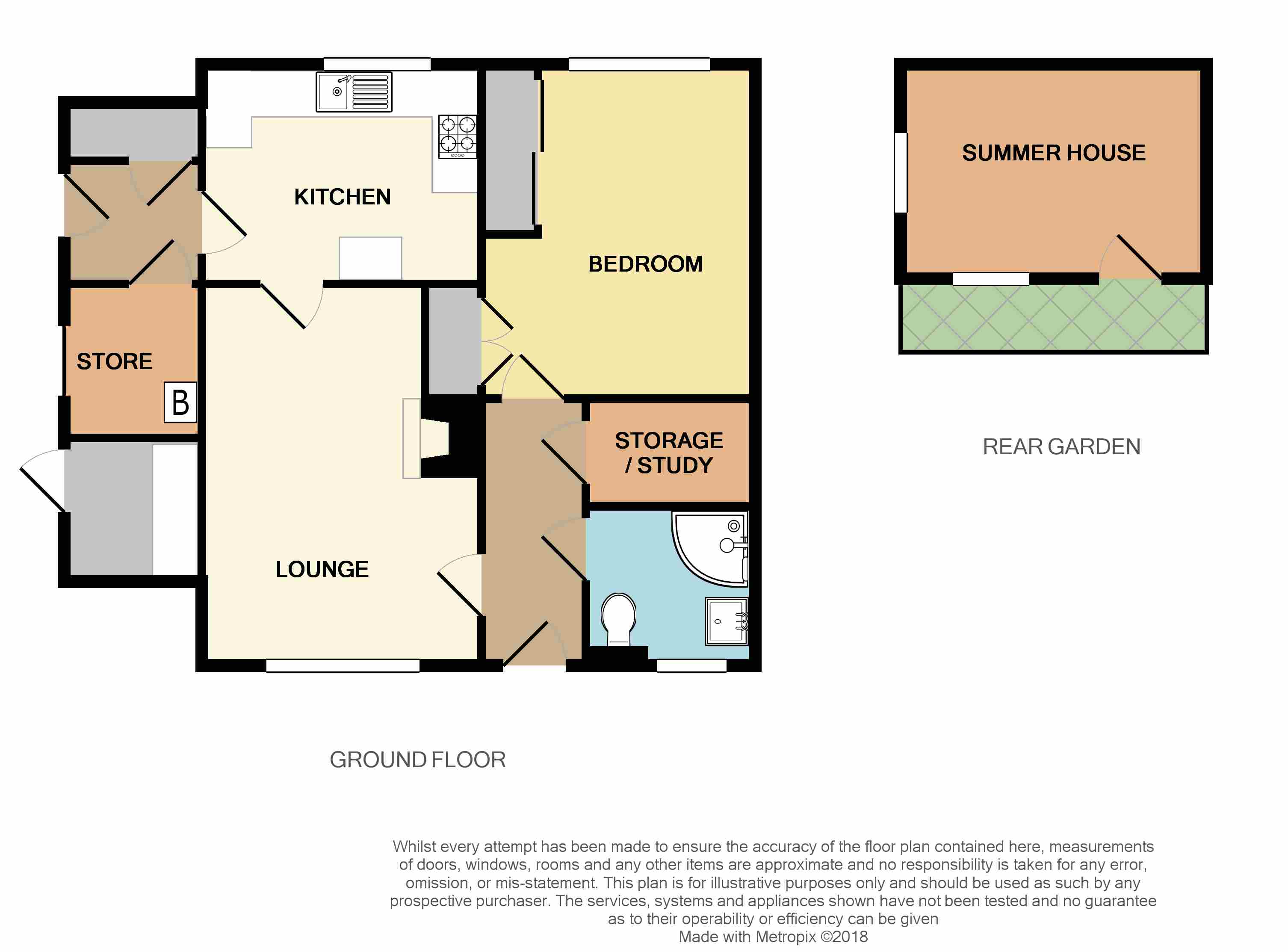 Finishing out to the rear, the garden that comes with this home is surprising large. It begins with a slabbed patio that is easily large enough for a table and chairs before moving to the lawn which covers the majority of the garden. There is a large summer house kept at the rear of the garden that has a secure door and windows to the side and front. The garden is kept private with a large hedge to the left boundary and wooden fence with shorter hedge to the right.