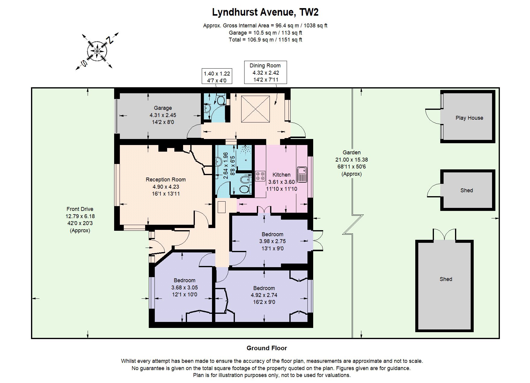 A three bedroom detached bungalow with ample off street parking and a wide 70' garden to the rear. Situated on this popular road within easy access of Whitton Station and High Street and The River Crane and Crane Park, this spacious property of circa 1038 square foot provides a large reception room, three double bedrooms, shower room, cloakroom, fitted kitchen and dining room. There is an internal garage which provides excellent potential to provide additional living space if required. To the rear of the property is a mature garden with large lawned area, three wooden sheds and a pond. An internal viewing is highly recommended.