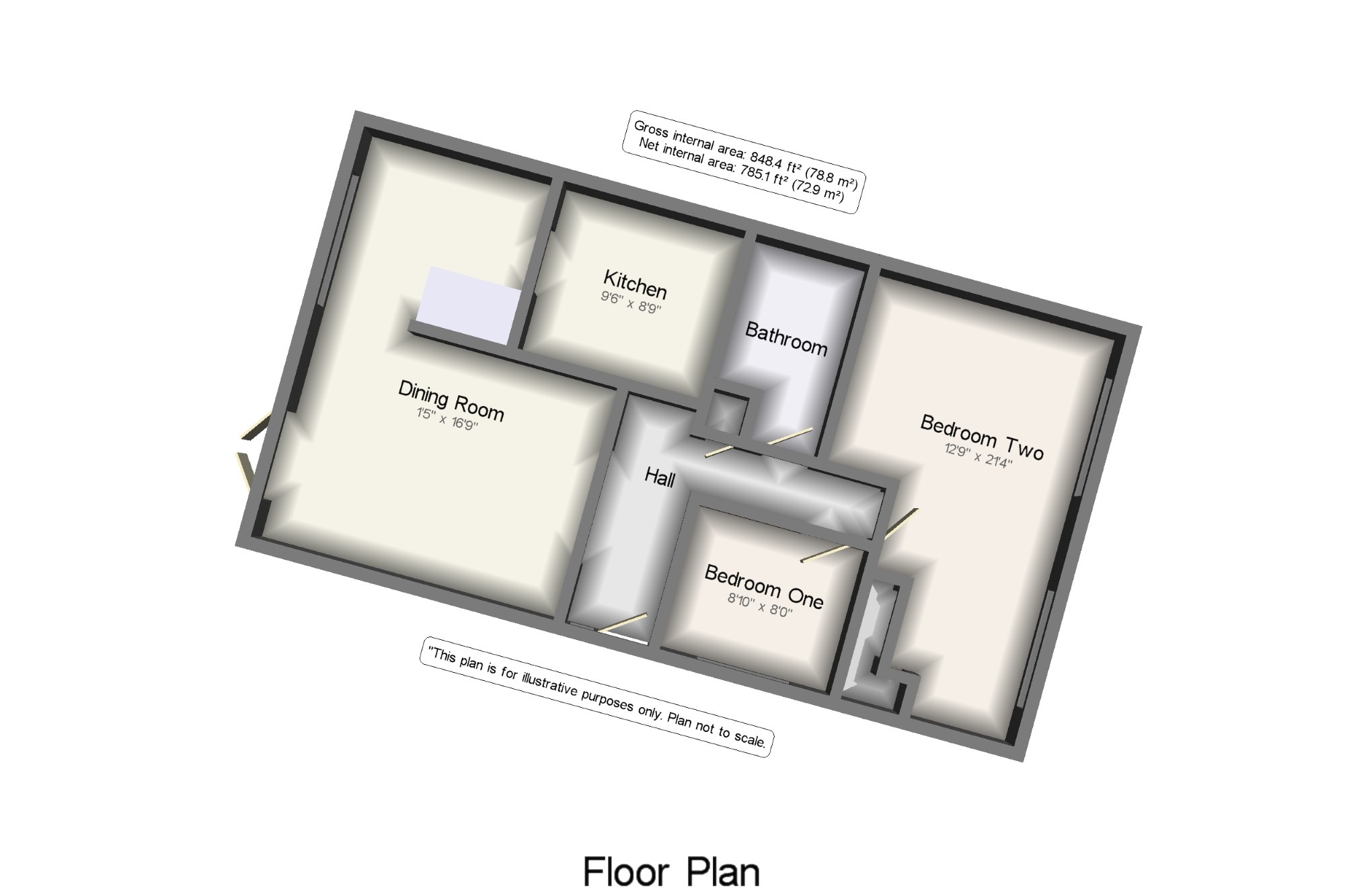 Bedroom One8'10" x 8' (2.7m x 2.44m).