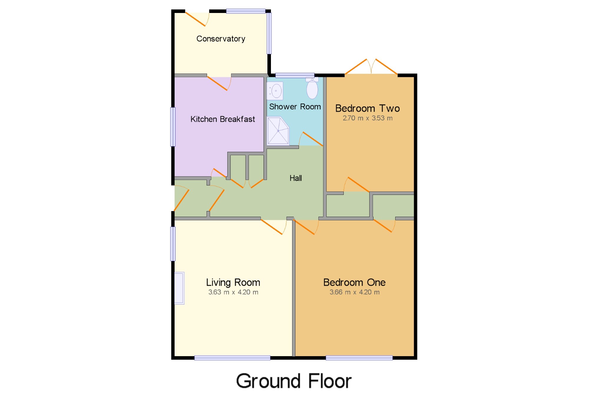 Bedroom One12' x 13'9" (3.66m x 4.2m). Double glazed uPVC window facing the front overlooking the garden. Radiator, fitted wardrobes and built-in storage cupboard.