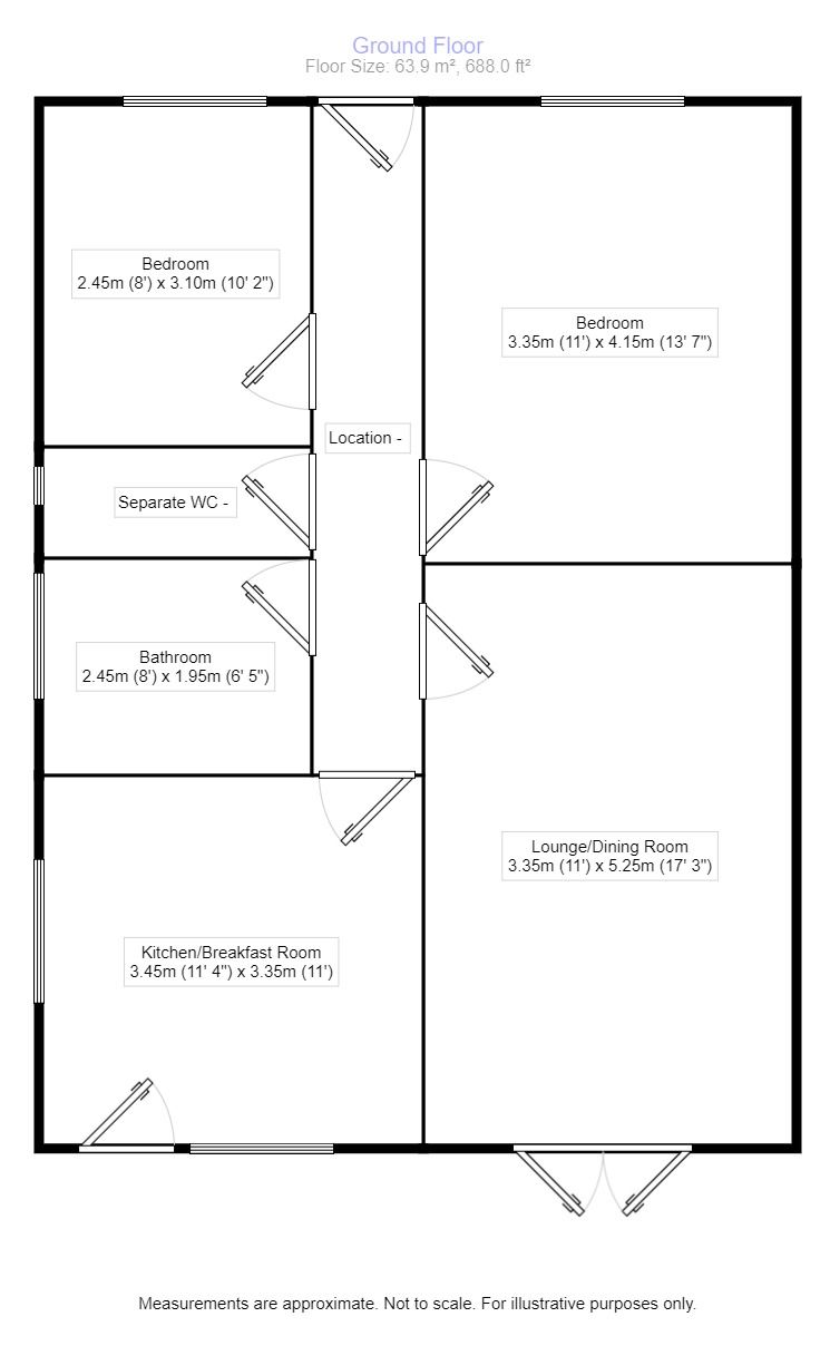 Fabulous 2 Double bed-roomed Bungalow available to view now! The Entrance Hall leads to the Master Bedroom with a 4 mirrored sliding doors wardrobe & window to the front, The second bedroom & the spacious Lounge Diner with french doors overlooking the rear garden. The Bathroom is fitted in white with a shower over the bath & has a separate W/C The Breakfast Kitchen is fitted with a range of modern units & gives access to the rear garden which is laid to lawn, there is a garage style outbuilding along with a driveway to the side. EPC rating grade to follow