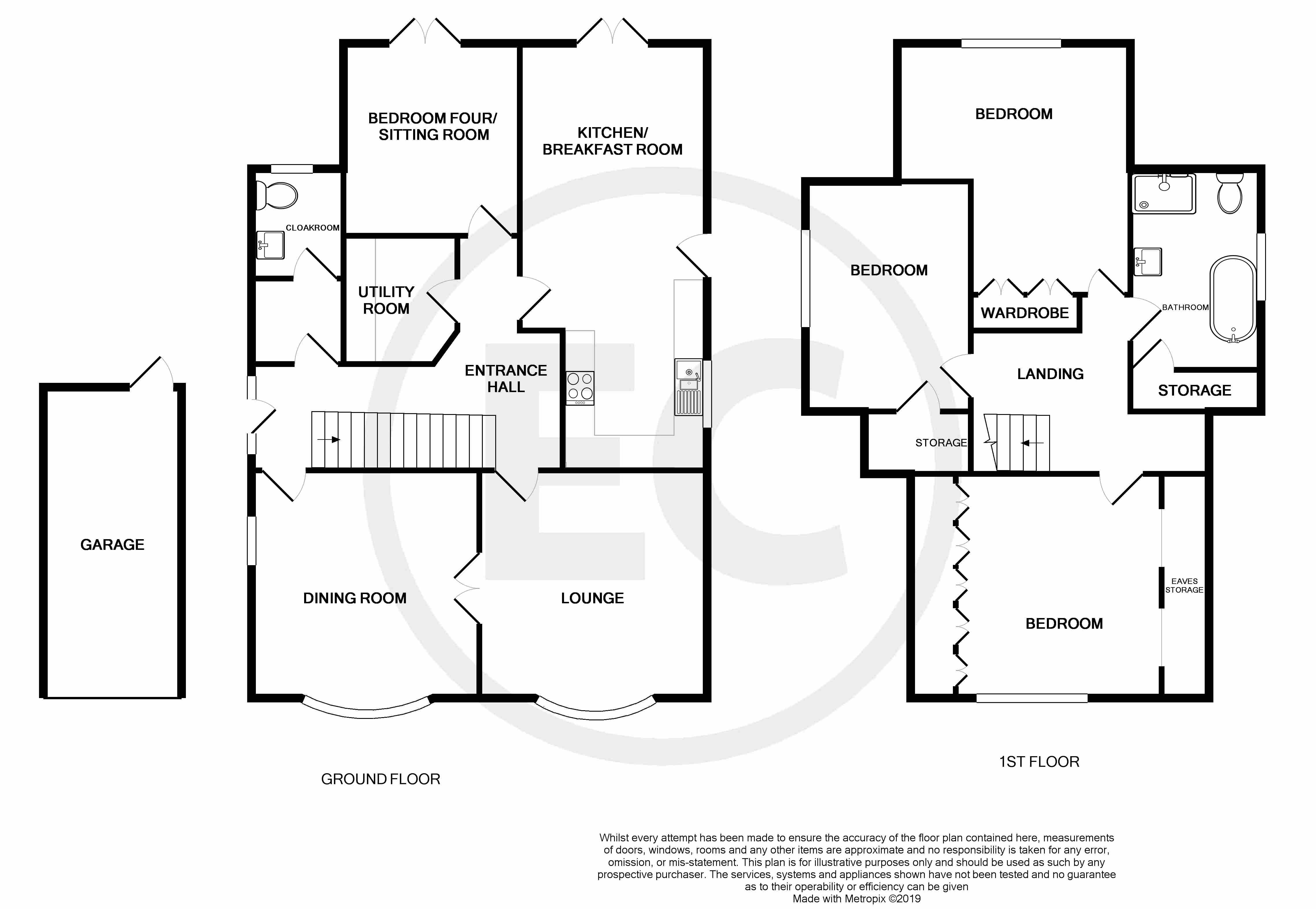 Frontage A block paviour in and out driveway sweeps behind a dwarf brick wall with cast iron railings and a mature flower and shrub border, wrought iron pedestrian gate provides access to the property and rear garden. Access to garage via up and over door.