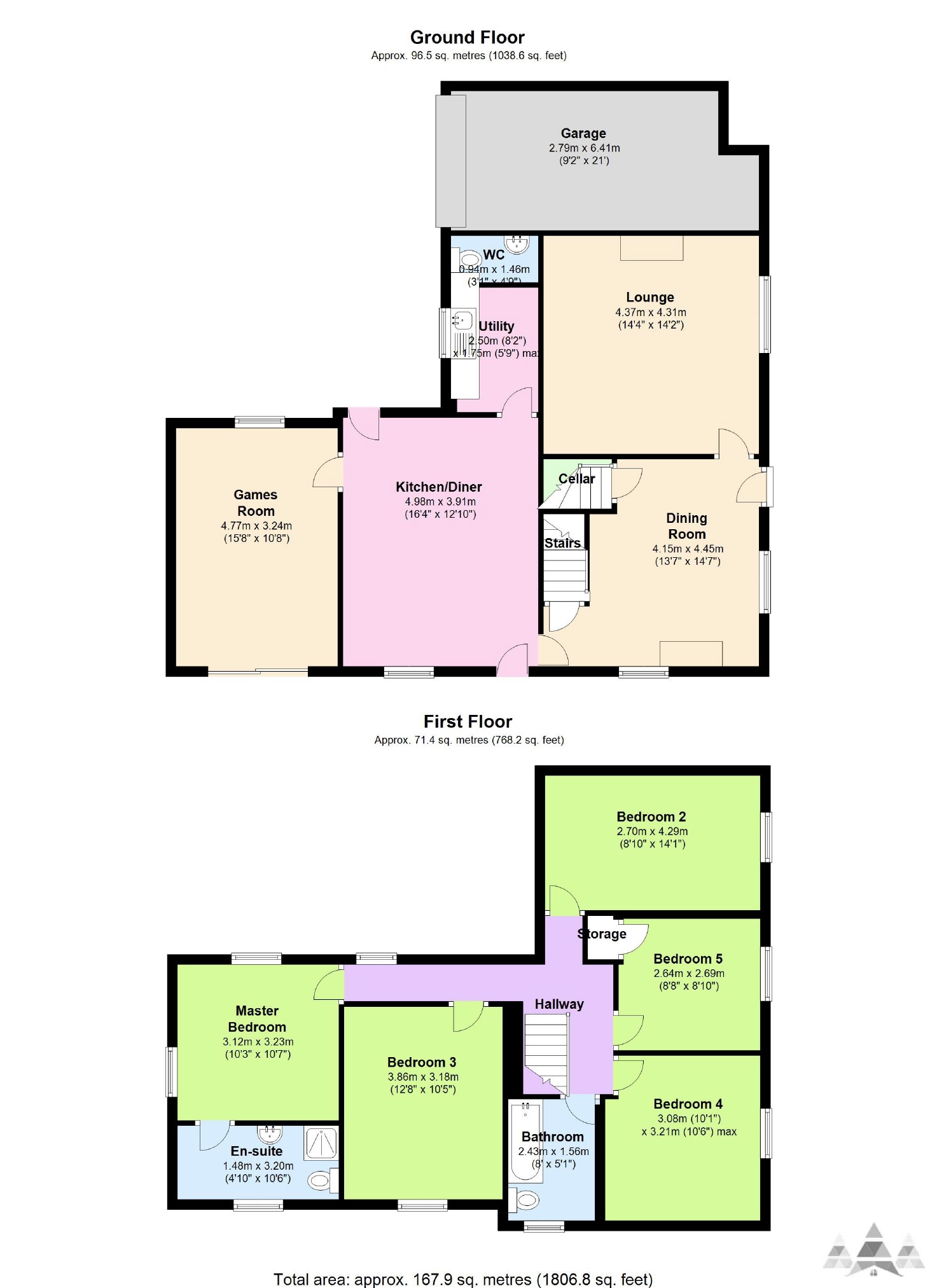Five bedrooms ( four double and one large single)