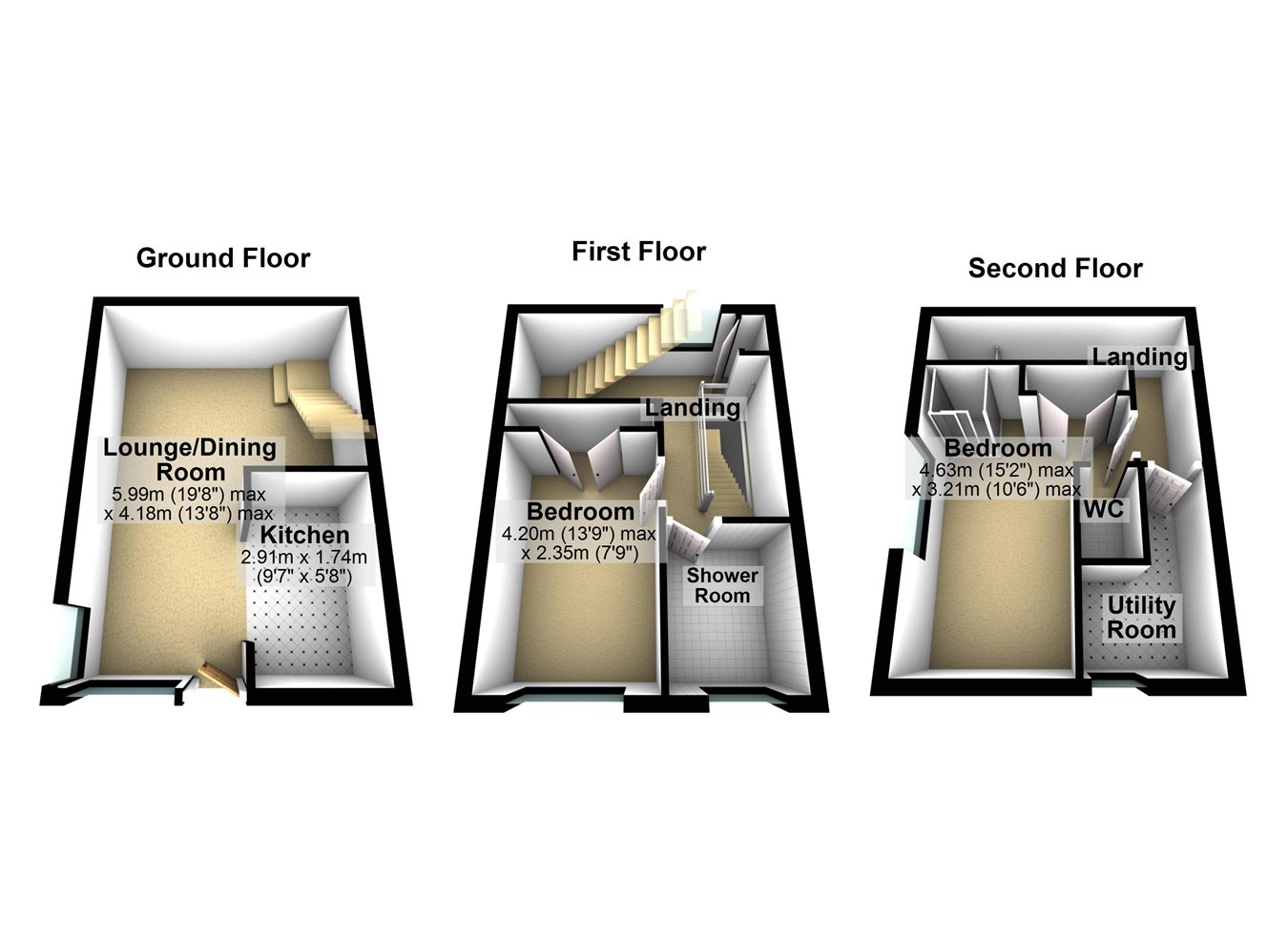 The house itself is laid out on three floors with two double bedrooms, an open plan lounge/diner with a modern fitted kitchen, shower room, first floor landing with study area, second floor landing with library area, and the second bedroom having an en-suite w.C. As well as an enclosed shower cubicle. Both bedrooms have fitted wardrobes.