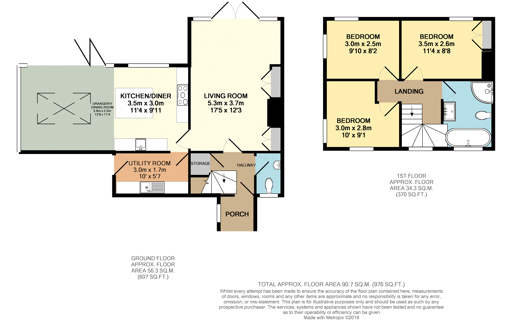 The very well presented internal accommodation comprises briefly: Porch, entrance hallway, downstairs WC, utility room, living room with cast iron wood burning stove, open-plan kitchen and oak framed orangery with bi-folding doors opening to the rear garden. To the first floor there are three bedrooms and a refitted bathroom with roll top bath and separate shower.