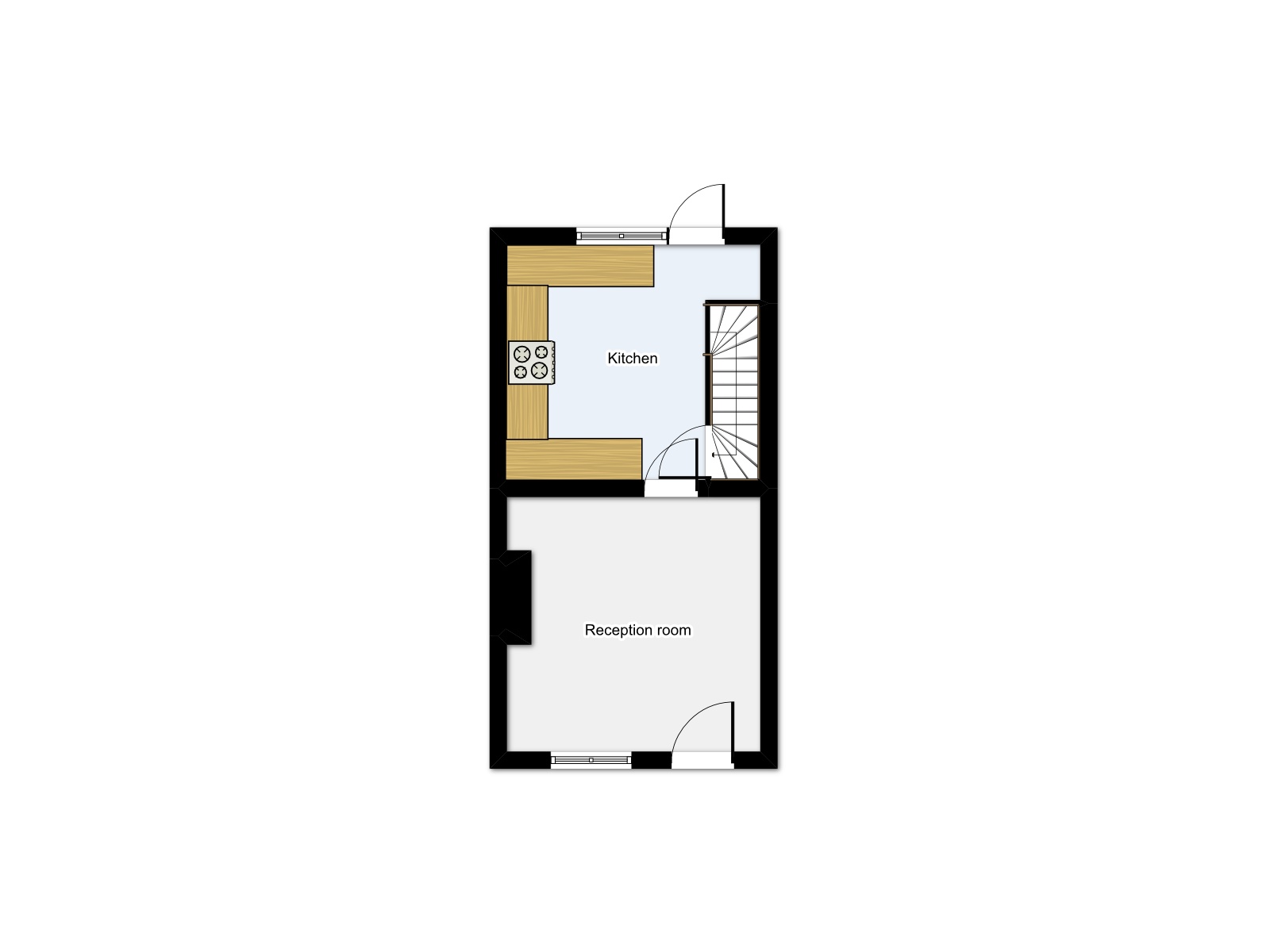 Reception Room: 3.63m x 3.62m UPVC double glazed window with Georgian casement grill to the front. Exposed brick fireplace inset with electric 'wood burning stove' on tiled hearth. Wood effect floor. BT point TV point Obscure glazed door to: