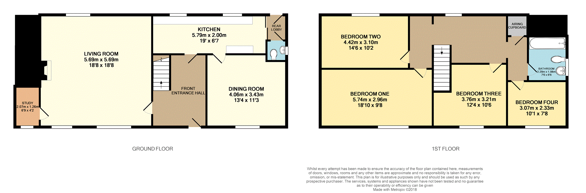 The accommodation comprises; front entrance hall, living room, study, kitchen, dining room, rear lobby and W.C. To the first floor there are four bedrooms and the family bathroom.