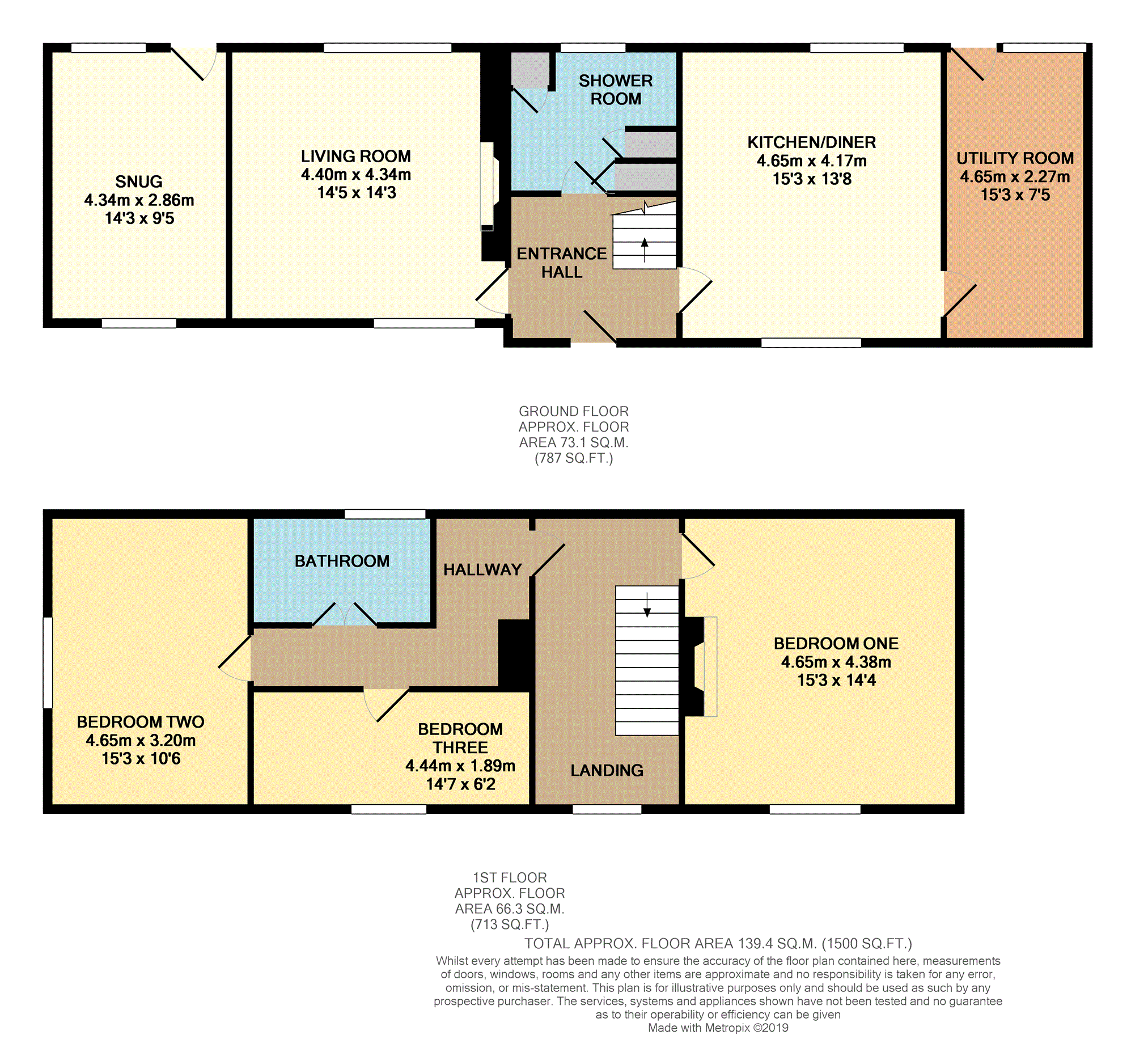From the entrance hall, there is a living room, leading to a snug/study with a window seat and door to the rear garden. To the right of the hall there is a kitchen/diner with a range oven and Belfast sink. An adjacent utility room has access to the rear garden. There is a downstairs shower room, and stairs leading to the first floor landing. Upstairs the large main bedroom has a fireplace, and there is also a further double bedroom and a single bedroom/dressing room. The family bathroom has a walk-in shower and double sink.