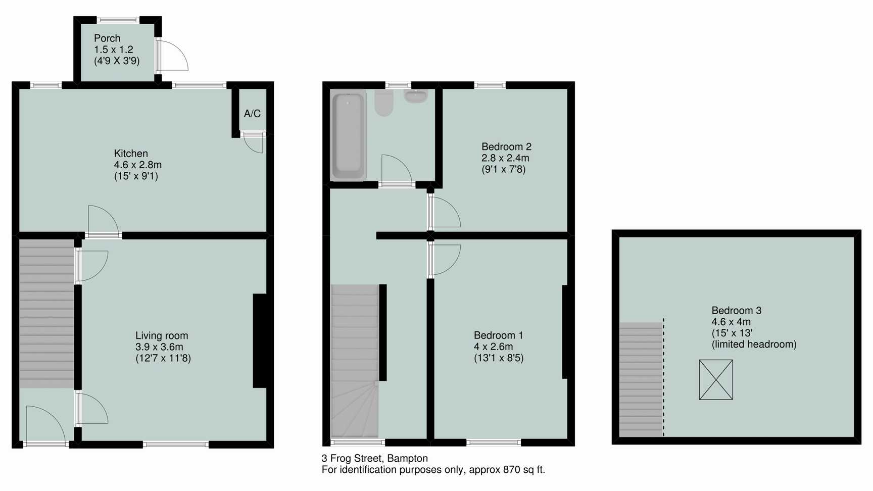 This charming stone cottage offers deceptively spacious accommodation over three floors with character features including pine latch doors, a stone fireplace and exposed beams and lintels. The front door leads into an entrance hallway, door to sitting room with stone fireplace, inset cast iron multi-fuel stove, latch door to deep understair cupboard. Kitchen/ dining room with fitted base units incorporating an electric cooker and stainless steel sink. Airing cupboard housing the Grant oil-fired boiler and hot water cylinder. Door to rear porch with door to the garden. On the first floor are two double bedrooms and a bathroom comprising a panelled bath with electric shower over, pedestal basin and WC. From the landing, stairs lead up to the third double bedroom in the eaves with exposed timbers, Velux window with views. The cottage has recently been redecorated and has new carpets throughout.