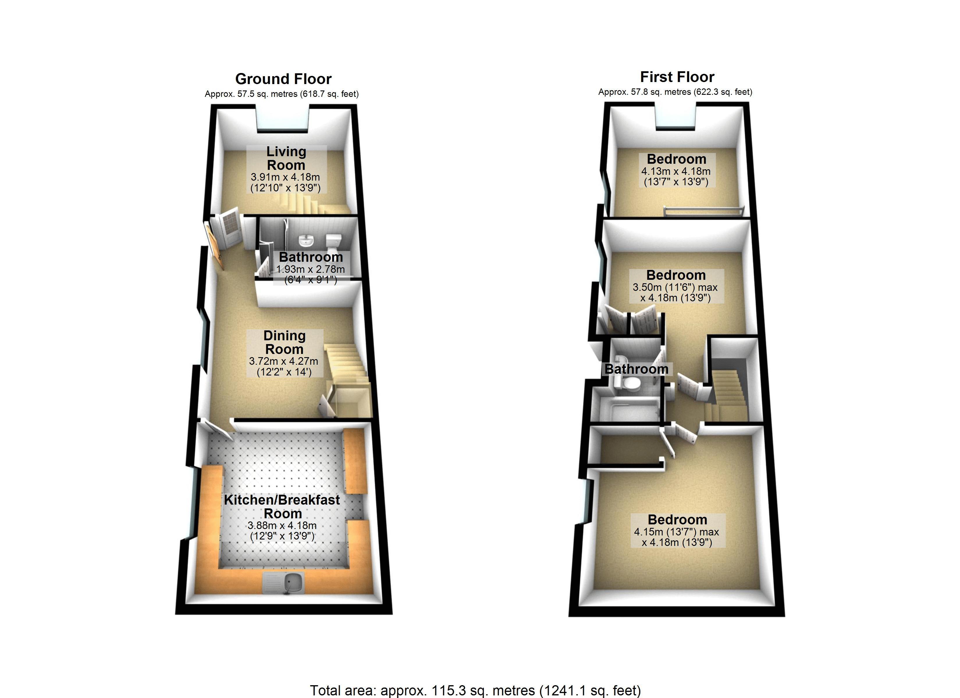 Twin UPVC double glazed windows to front of property, radiator, understairs storage cupboard, doors to kitchen, bathroom and living room.
