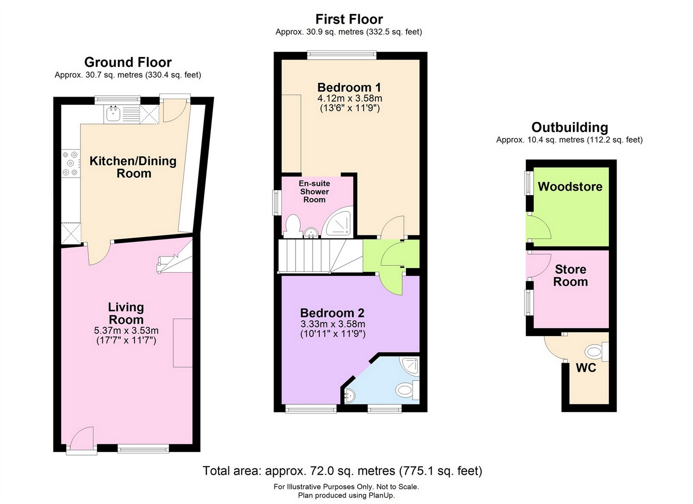 Two Bedroom - End Of Terrace Cottage - Lounge With Woodburning Stove - Kitchen/Diner - En-Suites Shower Rooms In Both Bedrooms - Out House -Outside WC - Gas C/H - D/G - Garden -Part Furnished - EPC- E