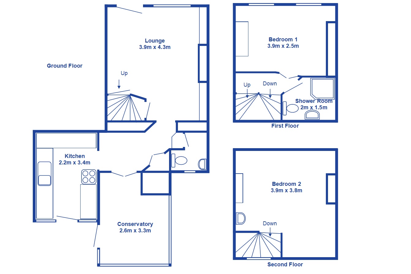 From the lounge are narrow stairs up to the first floor with a bright and airy double bedroom with built in storage. There is a bathroom with luxury shower and white sanitary ware.