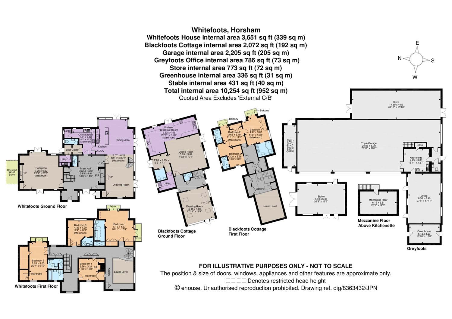 This is a substantial outbuilding of over 4,000 sq ft., newly built to a high specification with insulated roof, at present comprising exceptional garaging with electric doors, two separate stores, office, mezzanine and bespoke greenhouses to flank walls. Greyfoots flexible accommodation could easily be adapted to provide a gymnasium, home cinema, playroom, as well as garaging for several cars (subject to the necessary consents.) The gardens are a particular feature of the property being well maintained and mainly laid to lawn and interspersed with well stocked herbaceous borders and mature specimen trees. The gardens are contained within post and rail fencing with views over the adjacent paddocks. The property is accessed via electric gates and a sweeping driveway which splits to provide a secondary driveway to Greyfoots and Blackfoots Cottage. To the side of the entrance gates is a charming Coach House containing a stable and substantial stand by oil fired generator should the need arise.