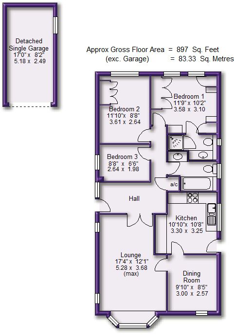The property is superbly proportioned with the accommodation extending to some 897 sqft comprising a Hall, Lounge, Dining Room, Kitchen and served by Three good Bedrooms and Two Bath/Shower Rooms.