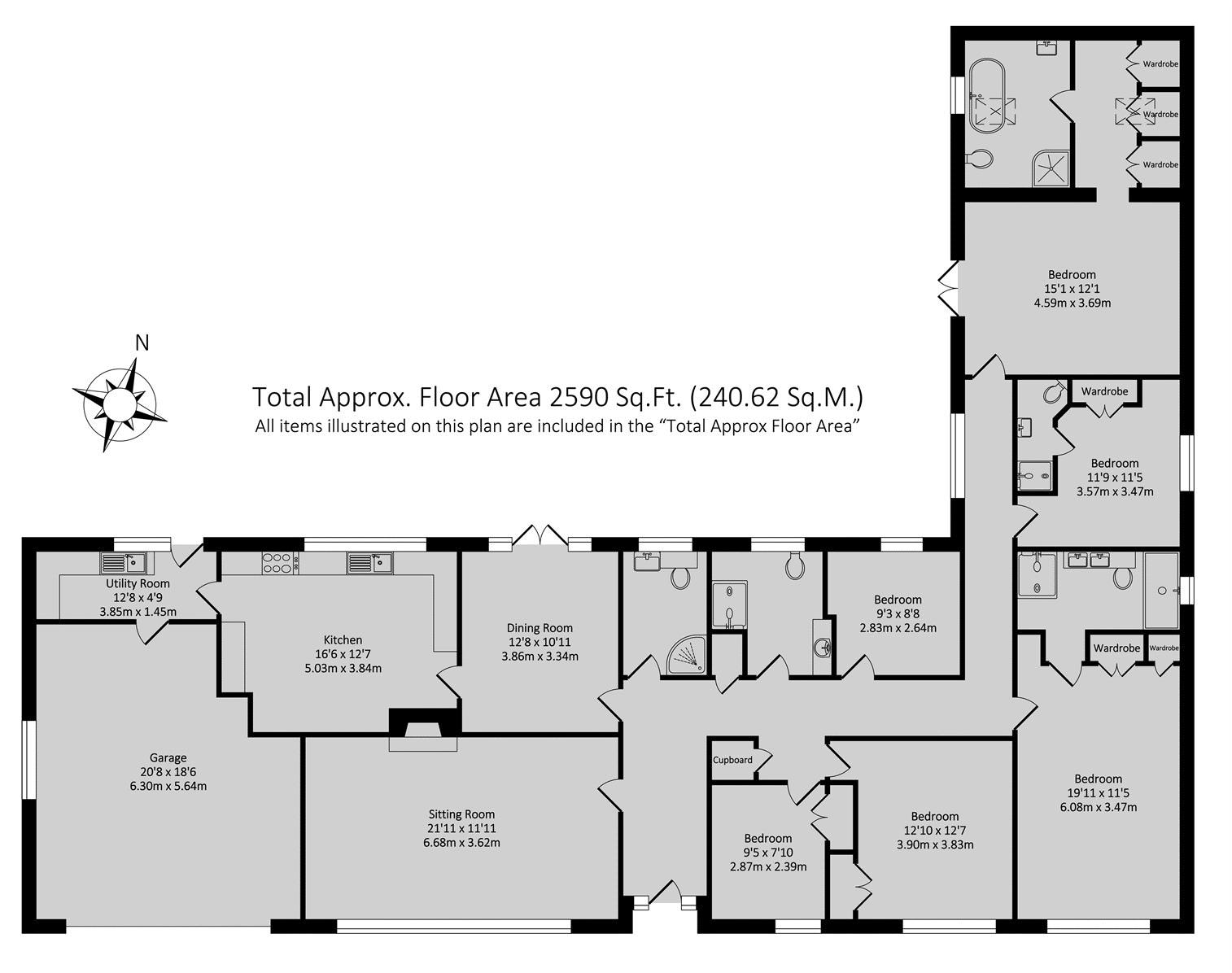 The dressing room has a range of built in wardrobes and has a door leading to a bathroom which is fitted with a high quality modern suite comprising a roll top bath, a separate shower cubicle, W.C. And wash hand basin.