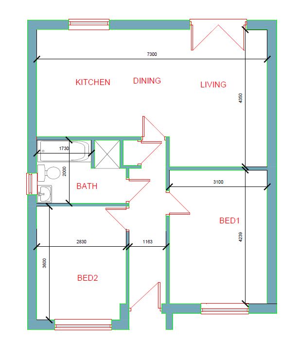 * Down lighters fitted to bathroom