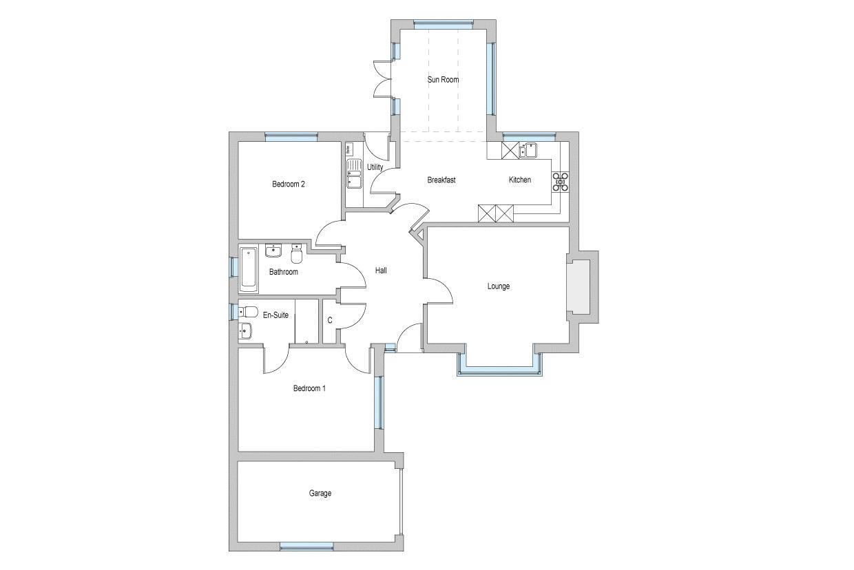 * stunning 2 bed detached bungalow * central hall * spacious lounge with bay and inglenook fireplace * breakfasting kitchen with superb adjoining sun room/lounge * utility * master bedroom with en suite shower room * double bedroom 2 * large bathroom * combi gas fired boiler * full UPVC double glazing * single garage with large block paved driveway with additional parking *