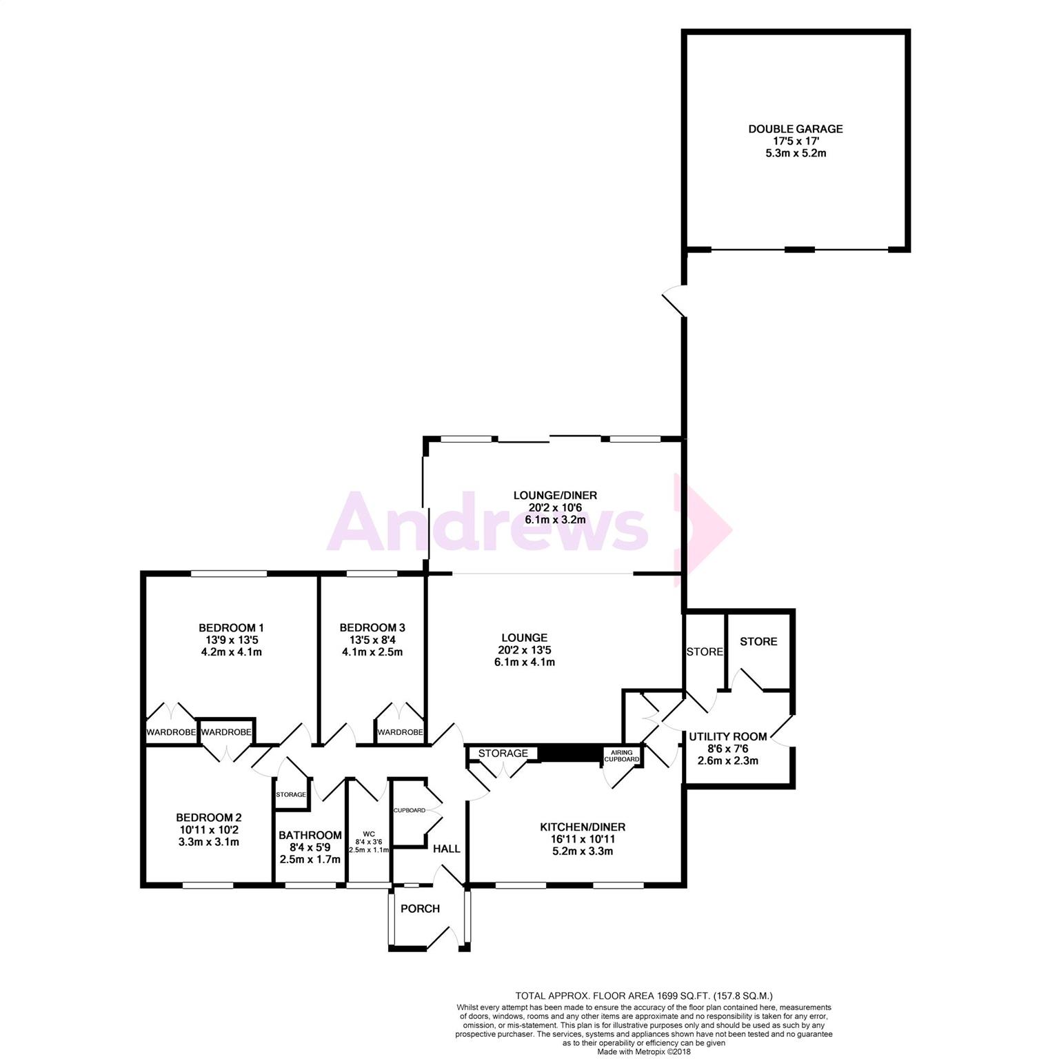 The bungalow itself has been extended to feature an impressive 24ft by 20ft lounge which overlooks the garden to the rear and has two sets of doors out to both the rear and side aspect. There is a kitchen breakfast room to the front with built in storage and access through to both utility and store rooms. All the living space is set on one side of the bungalow with the bedrooms sensibly on the opposite side. Three double bedrooms, all with build in wardrobes are accessed from the main hallway, as well as a family bathroom (converted to a shower room) and separate WC.