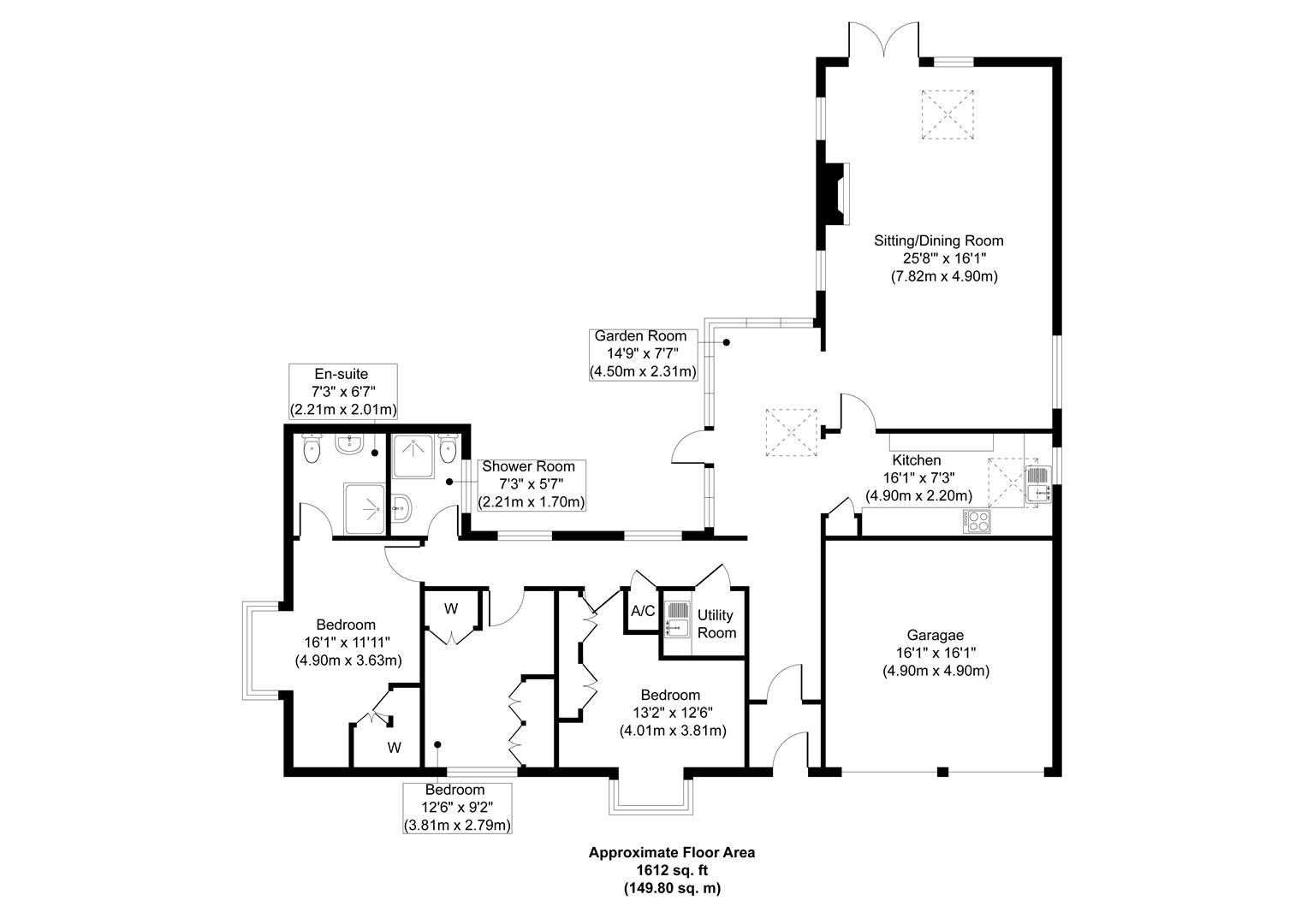 Upon entry you are welcomed by a lovely wide front door opening to the porch and into the entrance hall with exposed beams and flint faced walls. The open-plan sitting/dining room comes with a striking & vaulted ceiling, again with exposed beams, a gas fire, flint walls and patio doors leading out to the secluded rear garden. The kitchen is a country style oak kitchen with plenty of cupboards and work space, open-plan to the garden room/morning room with large picture windows and doors to the rear garden. On the other side of the bungalow there are three bedrooms, two with fitted wardrobes and one currently arranged as a study. There is one separate shower room and another en-suite shower room to the master bedroom.