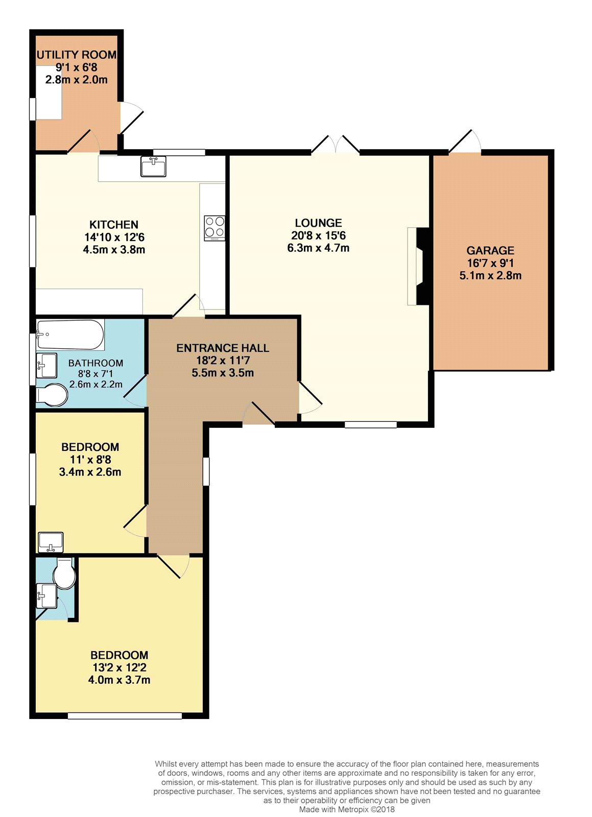 A driveway capable of holding three cars leads to the garage and the main entrance door. Adjacent to the property - on the left hand side, an additional strip of land also falls within the property boundary and is easily capable of holding an additional five vehicles. Stepping in to the hallway, the lounge is to the right hand side. Windows at both ends and a sliding door opening to the garden make this a very bright and welcoming room. The kitchen also leads from the hallway and enjoys ample storage and worktop space, equipped with an Indeset gas hob, electric oven, washing machine and dishwasher. A utility room opens from the kitchen, leading to the rear garden. The family bathroom, with an over the bath shower is positioned between the kitchen and the first double bedroom, benefiting from a vanity unit. The second double bedroom overlooks the front garden and also benefits from en-suite facilities.