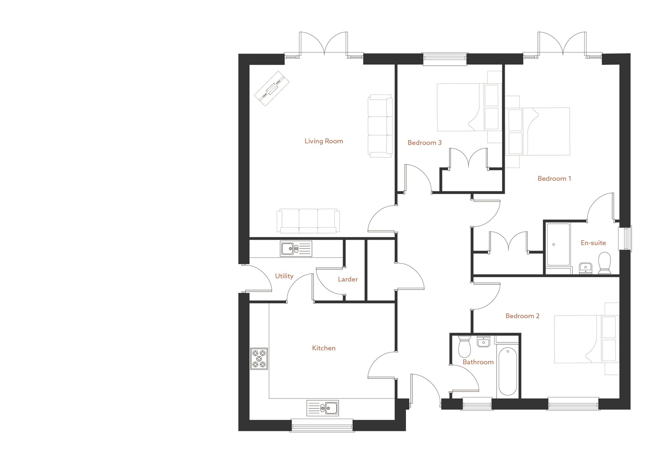 The Idbury - A beautifully designed three bedroom detached bungalow with double garage, fully fitted kitchen with separate utility and larder, living room, master bedroom with en-suite, two further bedrooms and a bathroom.