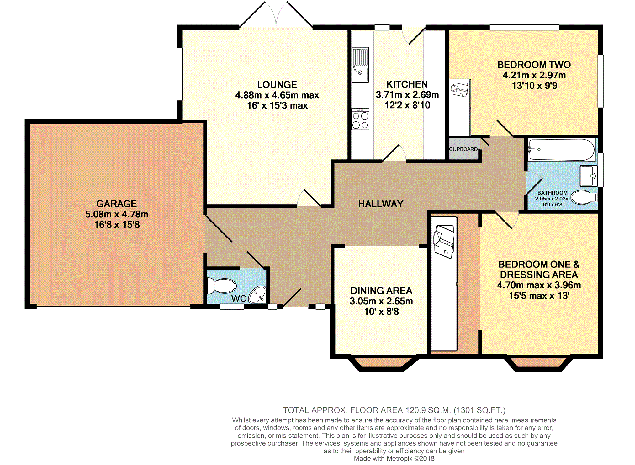 Double glazed window to rear and flank with window shutter blinds, chrome radiator, modern fitted wardrobes.