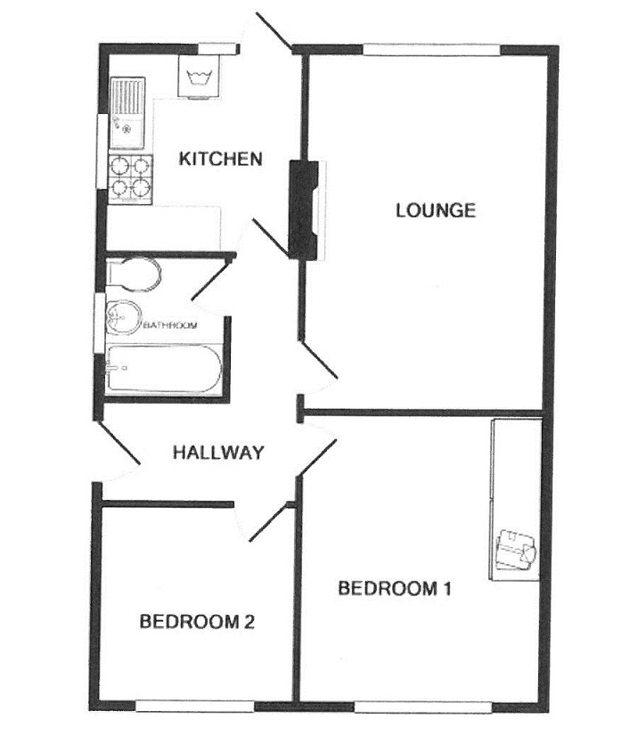 Kitchen 9' 1" x 9' (2.77m x 2.74m) Coving to ceiling. Built in white wooden cupboards. Space for cooker. Space for washing machine. Stainless steel sink with single taps. Tiled splash backs. Single glazed window to rear. Double radiator. Serving hatch to lounge. Wooden door with glazed panel to rear garden.