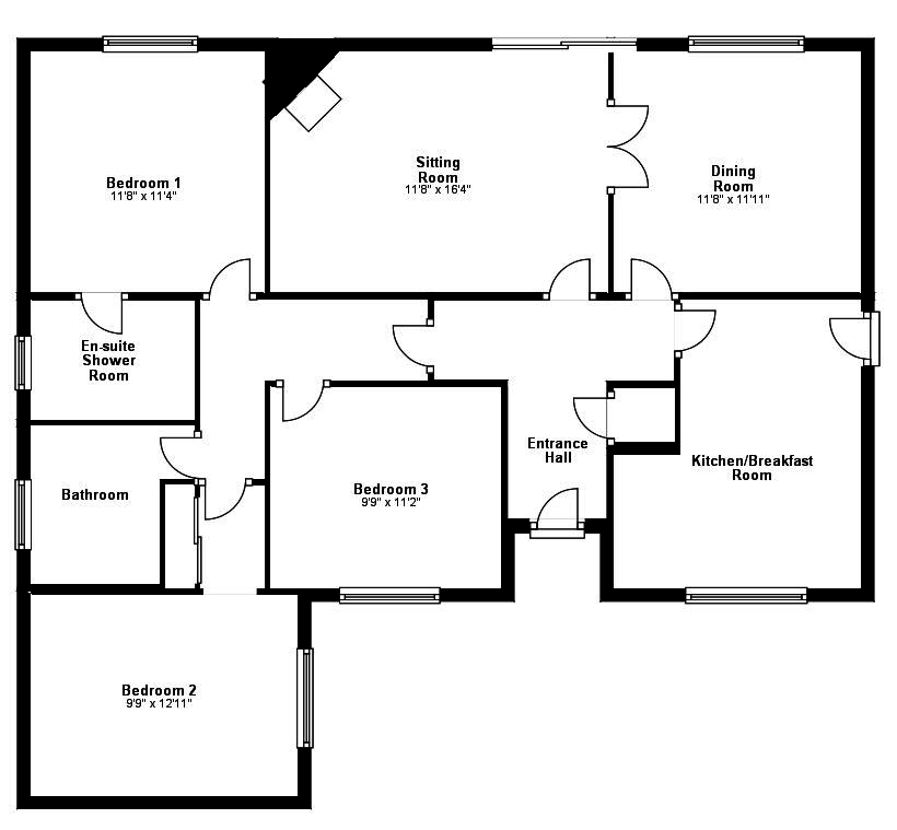 Bedroom three 11' 0" x 9' 8" (3.35m x 2.95m) Radiator, double glazed window to front aspect.