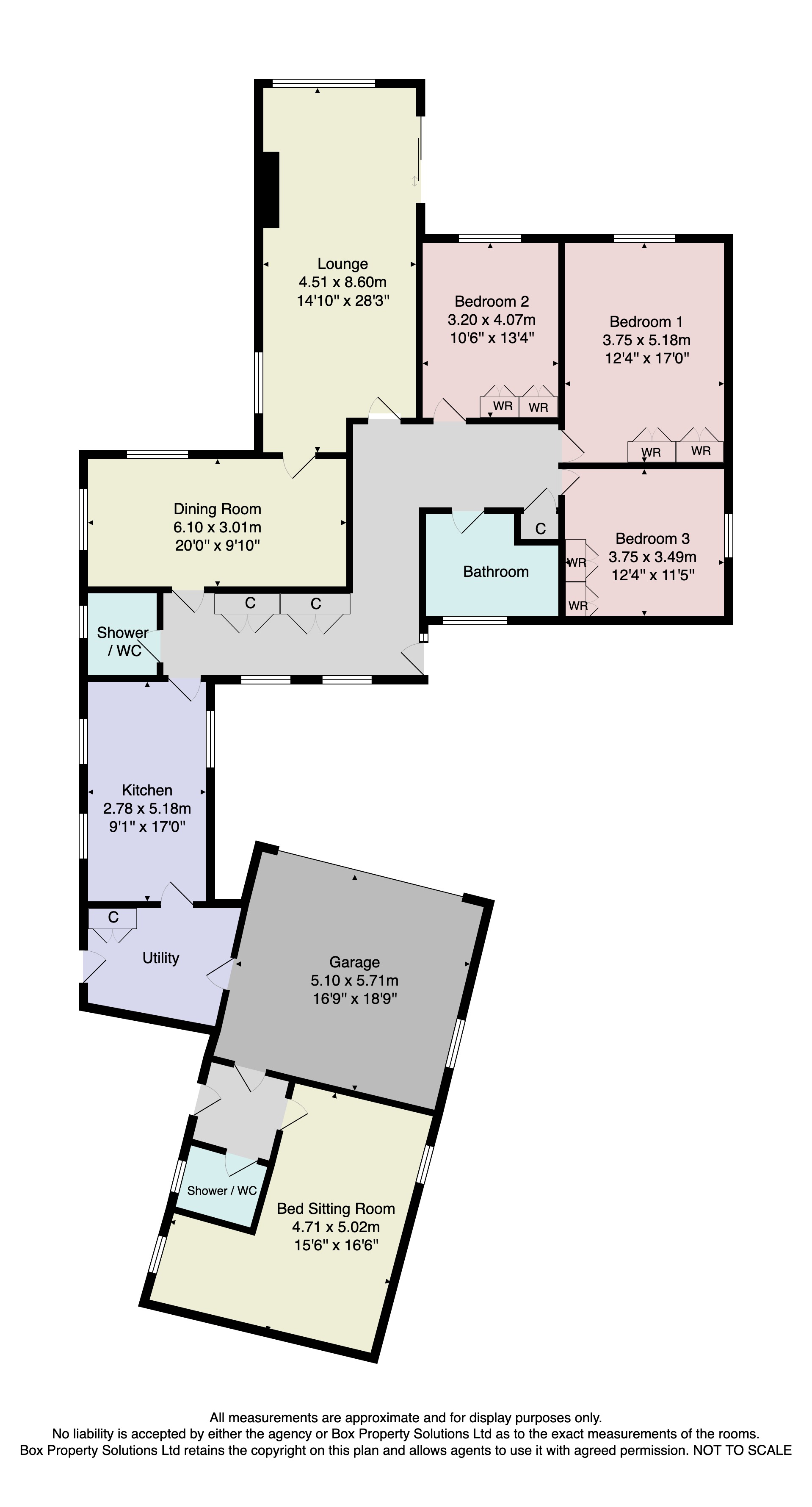 A superb modern detached bungalow offering spacious three-bedroomed accommodation, occupying a generous plot extending to approximately half an acre in this prime residential district of Knaresborough, close to the Nidd Gorge and within walking distance of the Market Place. Wylam Lodge is an excellent detached residence offering extensive and very spacious accommodation on one level, including annexe accommodation behind the double garage, plus a large detached outbuilding suitable for use as a workshop etc. The accommodation has the benefit of full gas central heating and double glazing.