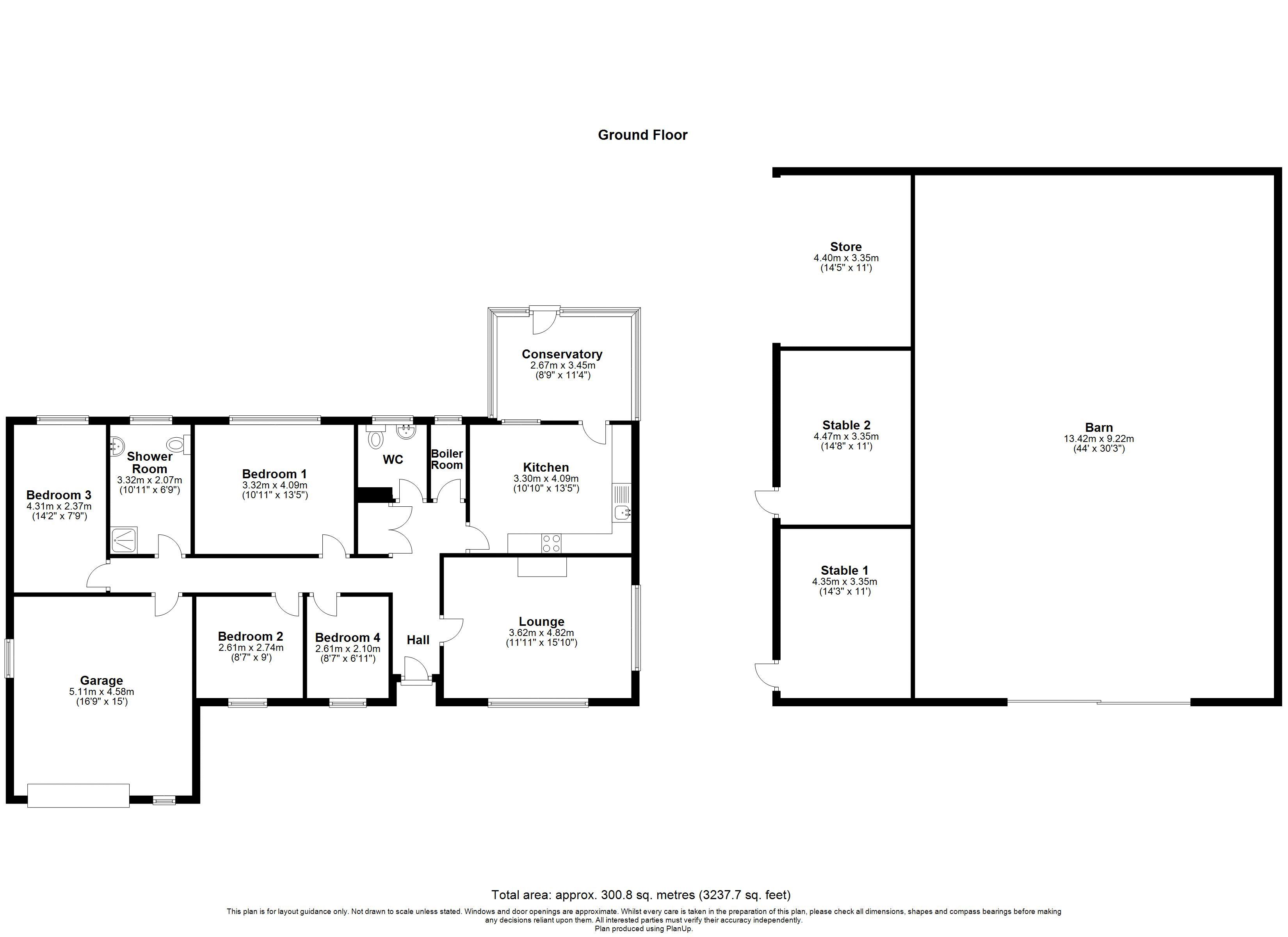 This 4 bedroom detached bungalow is perfect for renovation to make your forever family home. The accommodation comprises of hallway, lounge, kitchen, sunroom, boiler room, cloakroom/WC, 4 bedrooms, shower room and garage. Externally the property sits on approximately 5 acres of land and has the addition of a barn and stables.