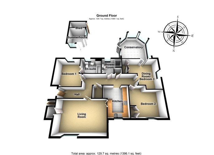 sociable set up for year-round entertaining! The bungalow’stwo perfectly-presented double bedrooms include one with a stylish fitted wardrobe and another with a favourably sunny aspect and a deluxe en-suite bathroom. Offset