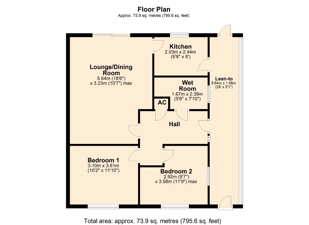 Wet room 1.68m (5'6) x 2.39m (7'10)